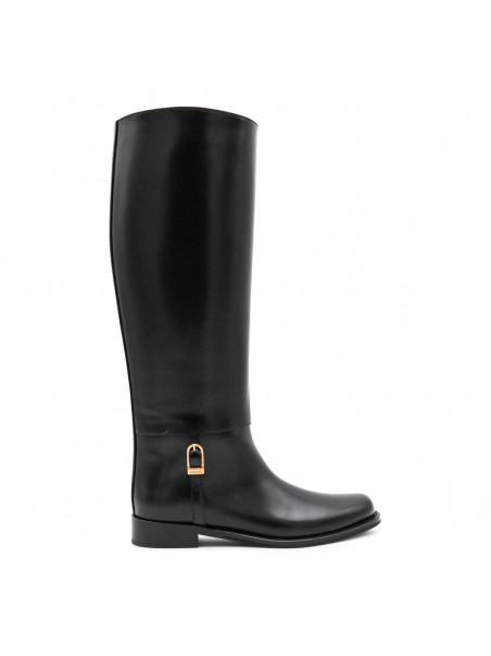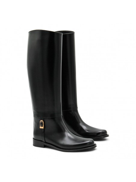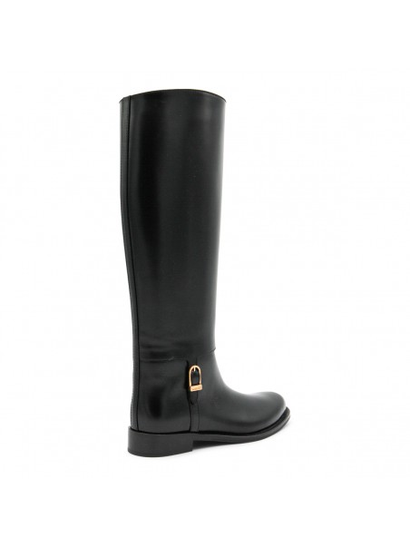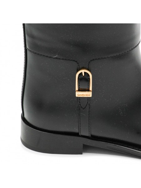 Black Horny leather boots from Saint Laurent featuring round toe, leather sole and gold tone hardware.
