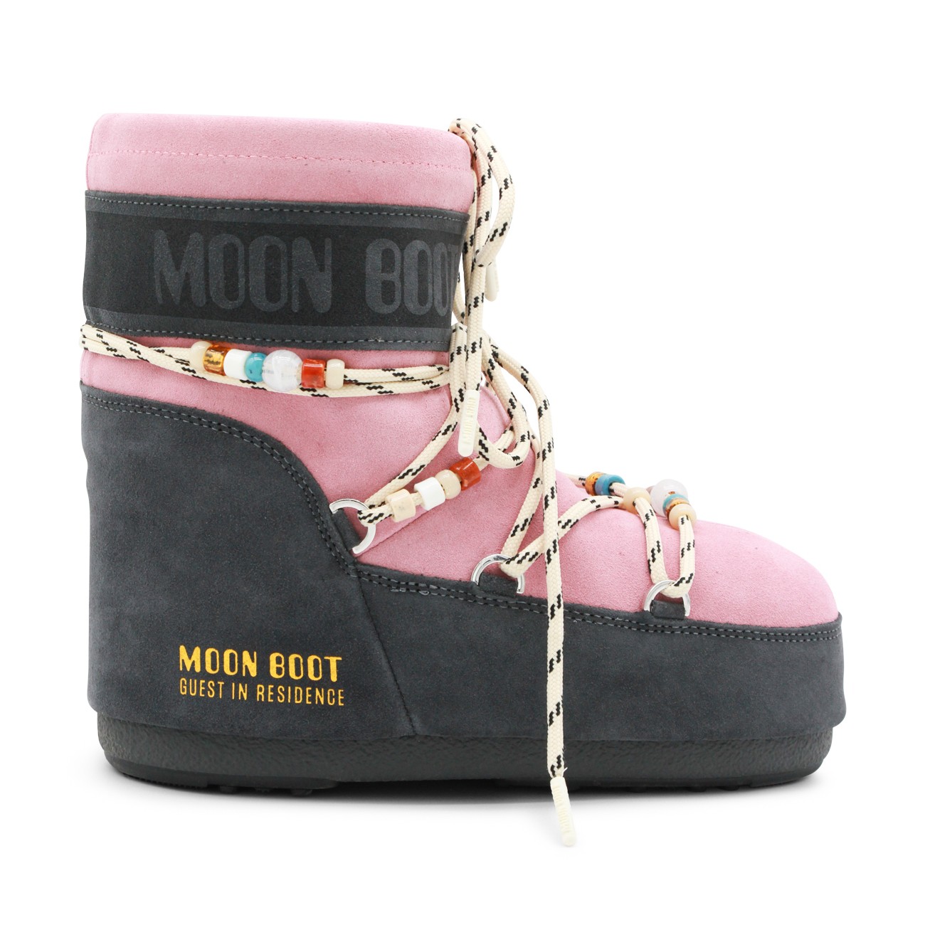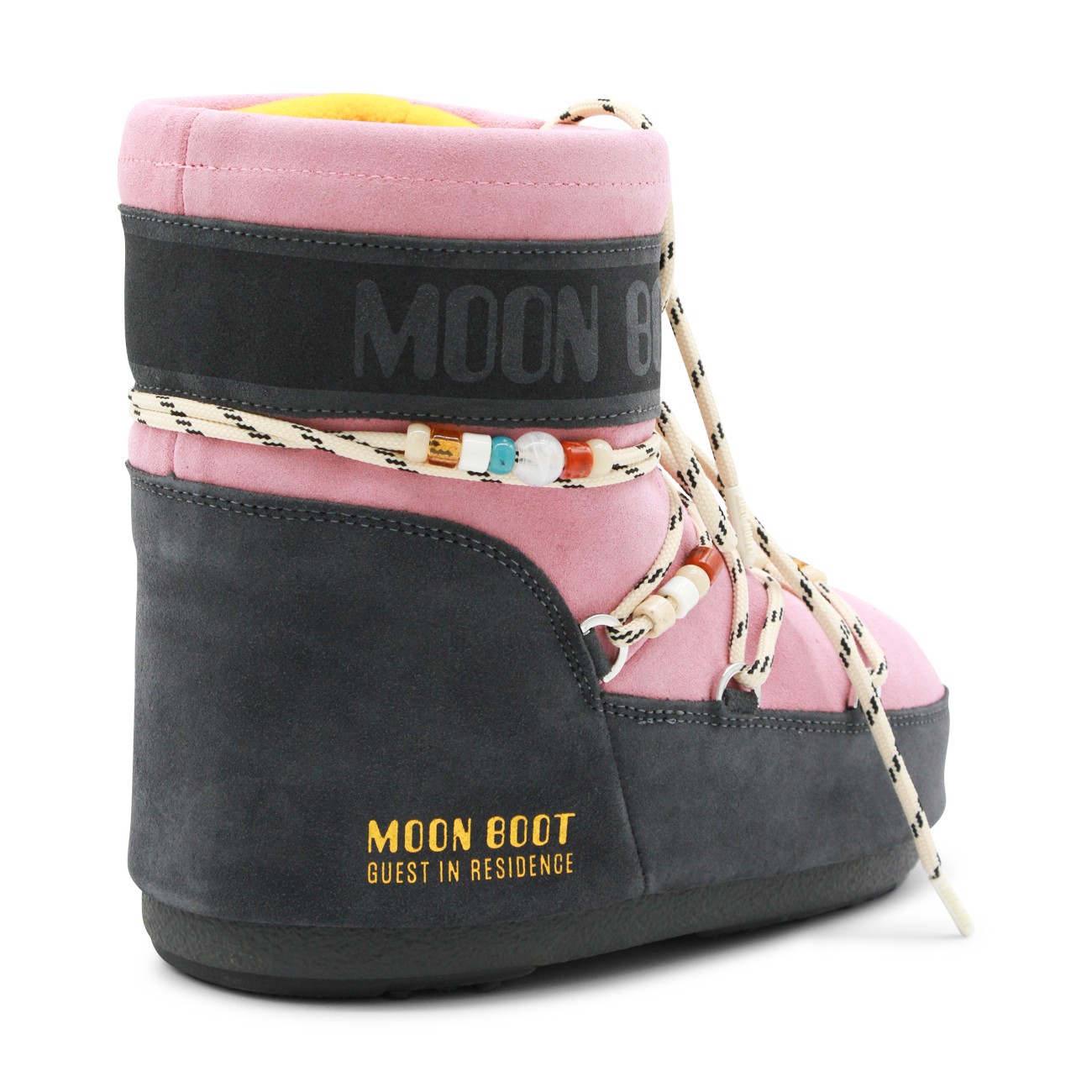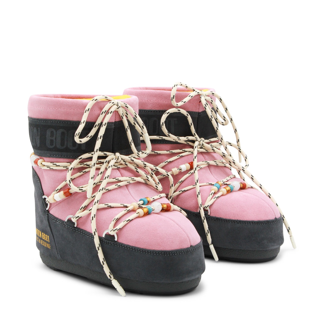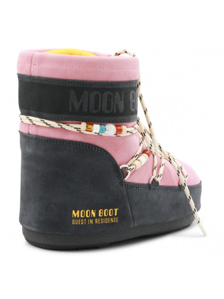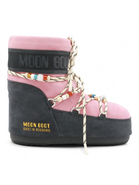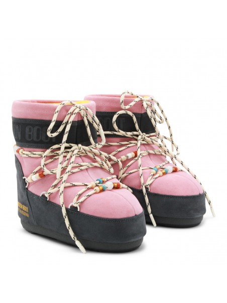 Grey and rose boots from Moon Boot featuring round toe, lateral logo print, laces fastening and drawstring.