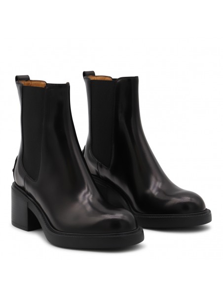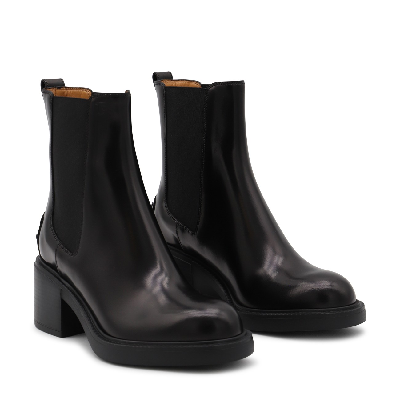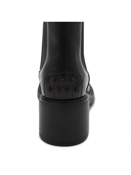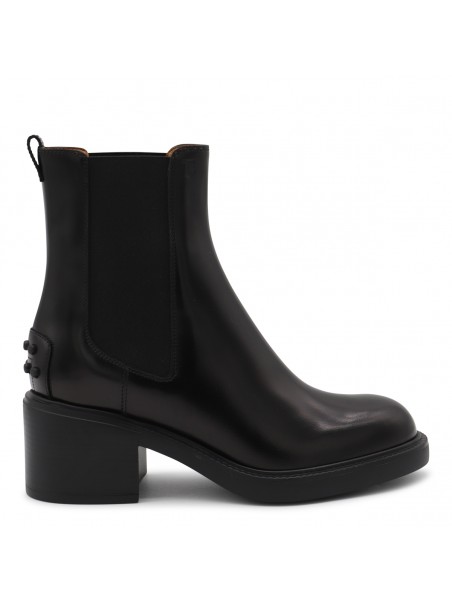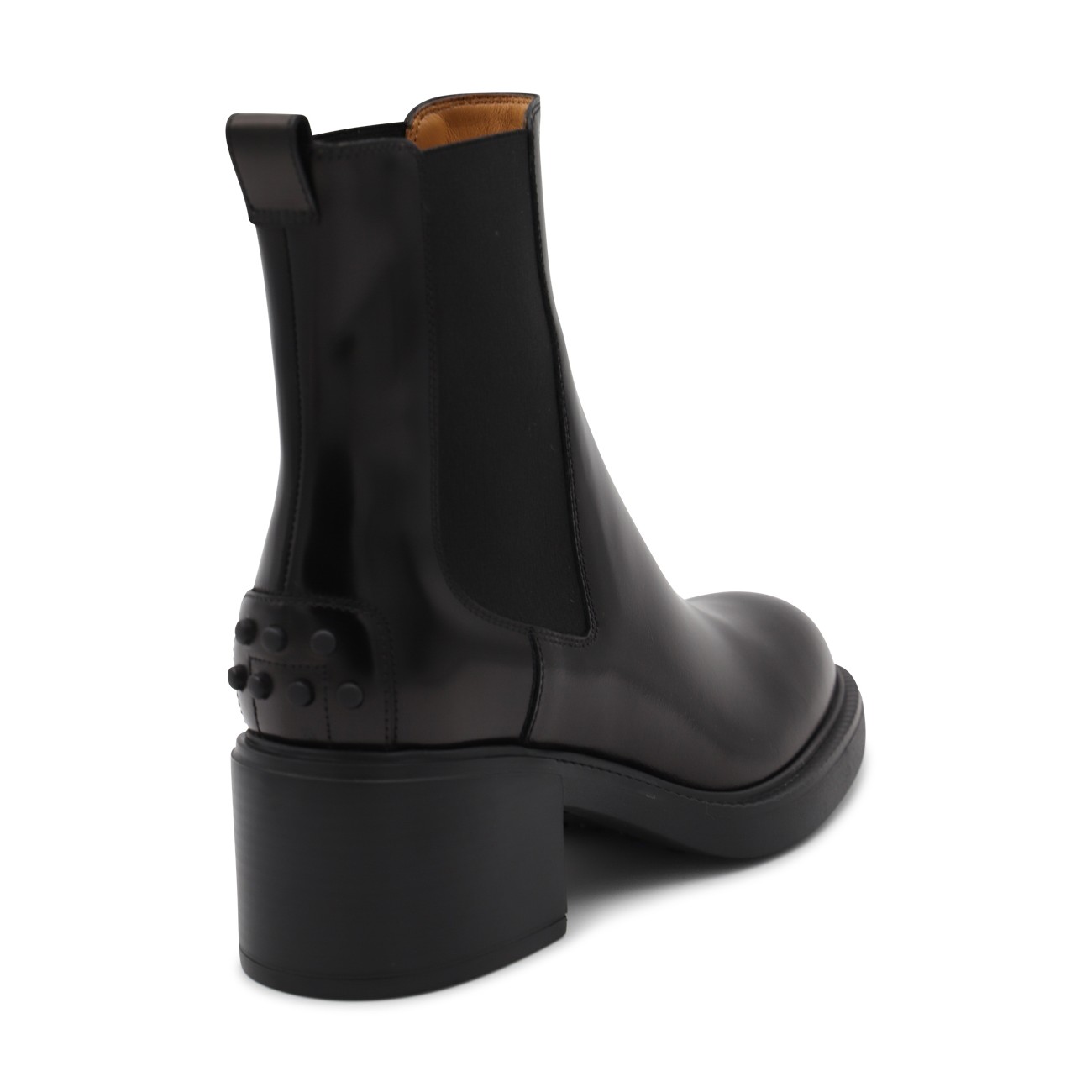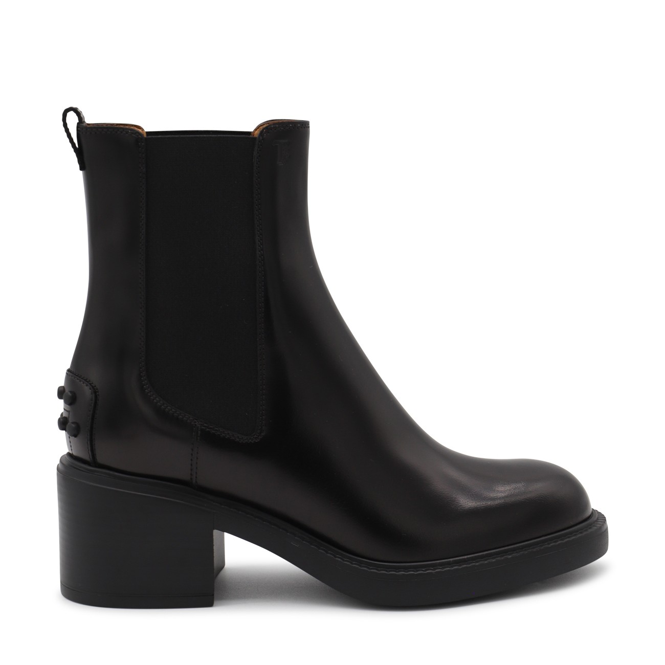 Black leather boots from Tod's featuring round toe, rubber sole, Gommino inserts, elasticated band and rubber mid heel.