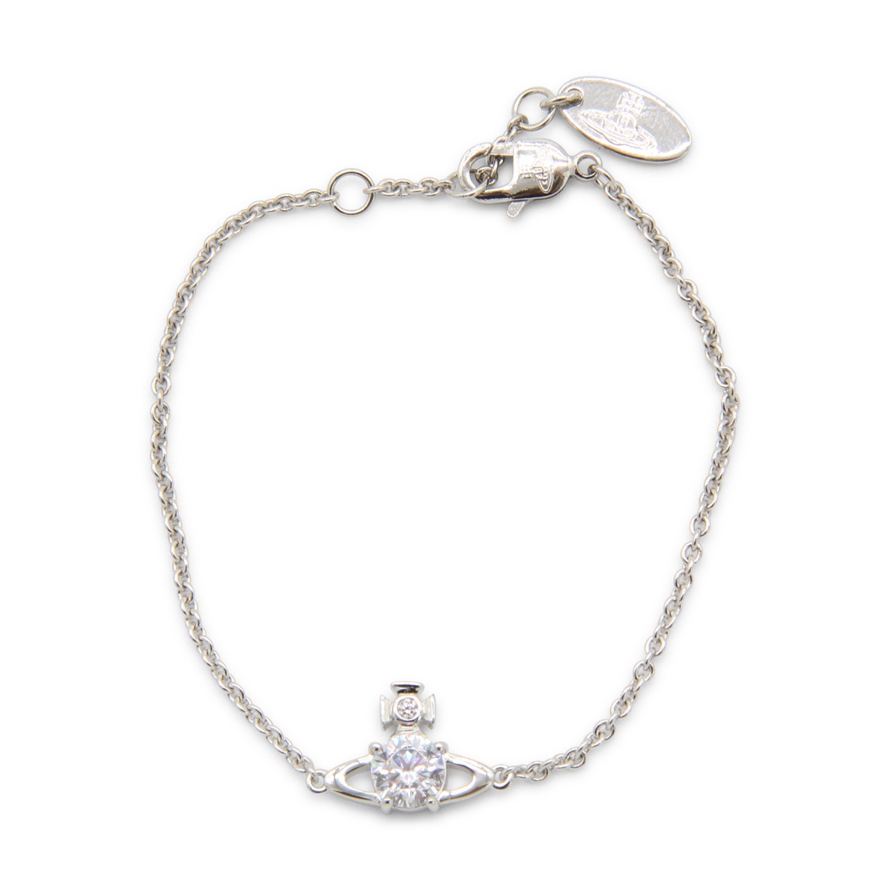 Platinum and white brass Reina small bracelet from Vivienne Westwood featuring adjustable closure, logo plaque and Orb detail.