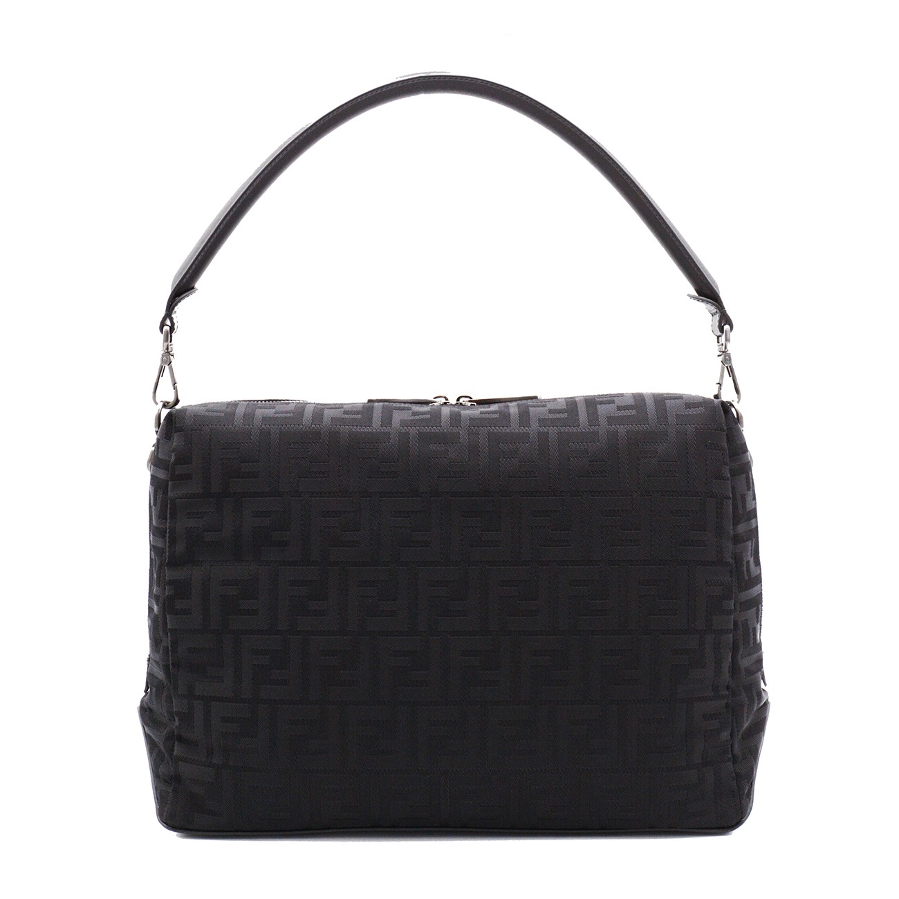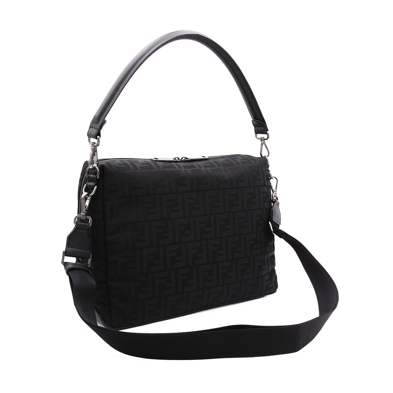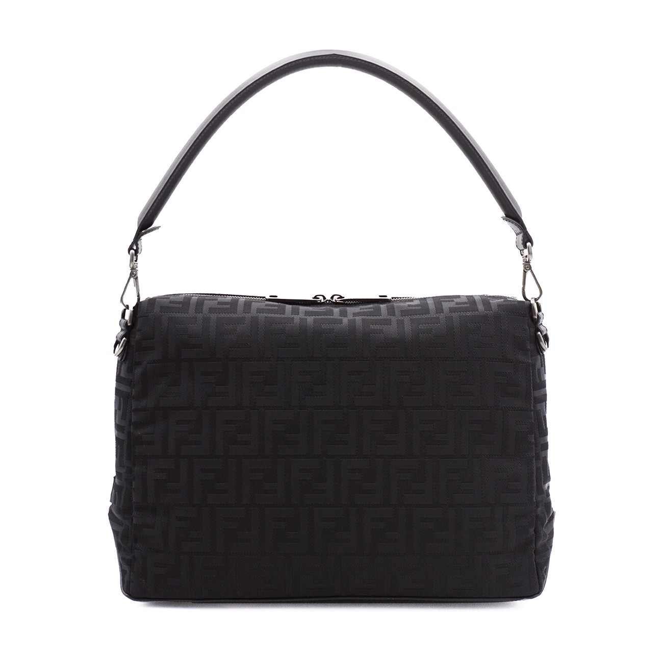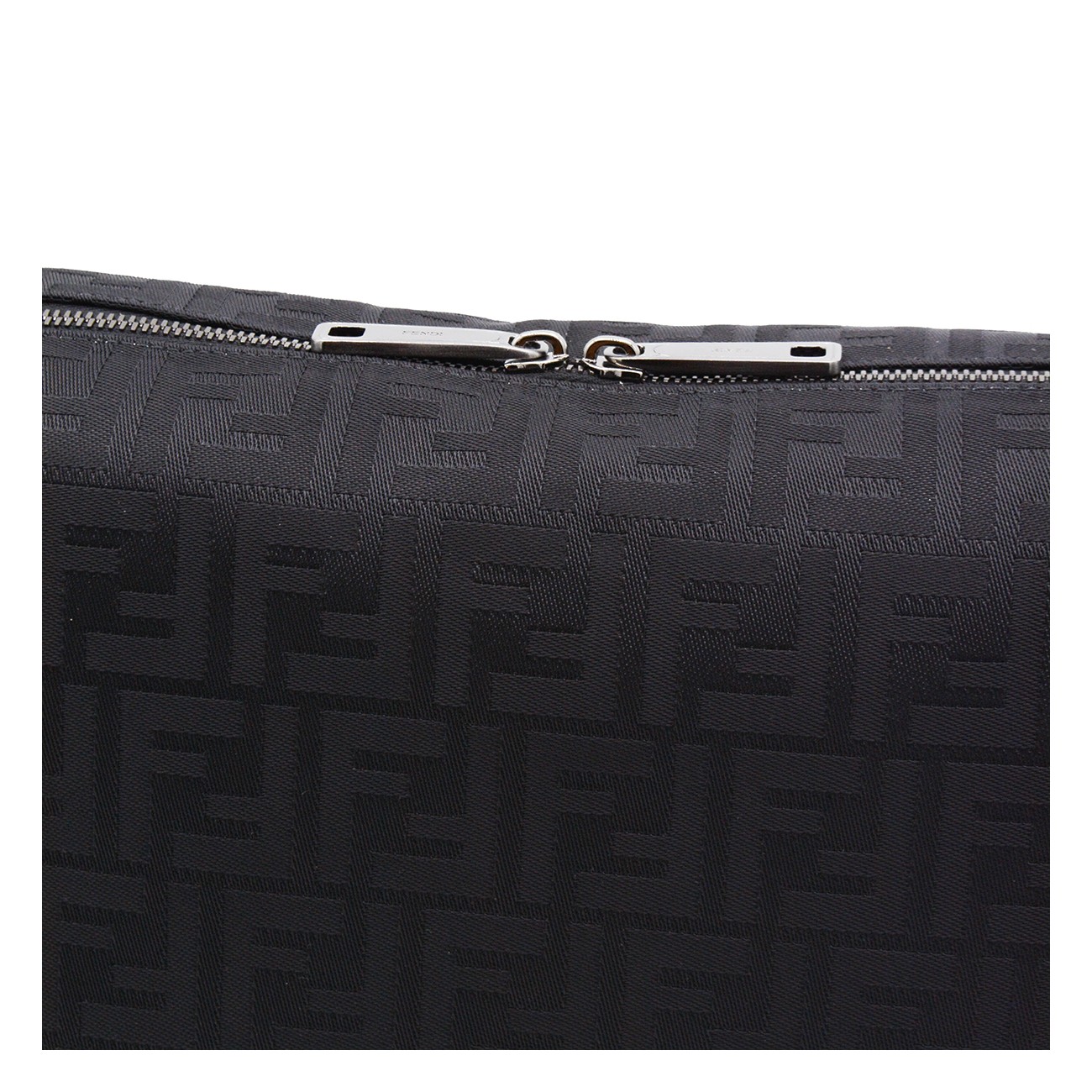 Black leather Fendi Lui crossbody bag from Fendi featuring top handle, all-over FF texture, double zip fastening, adjustable and removable shoulder strap and main compartment.