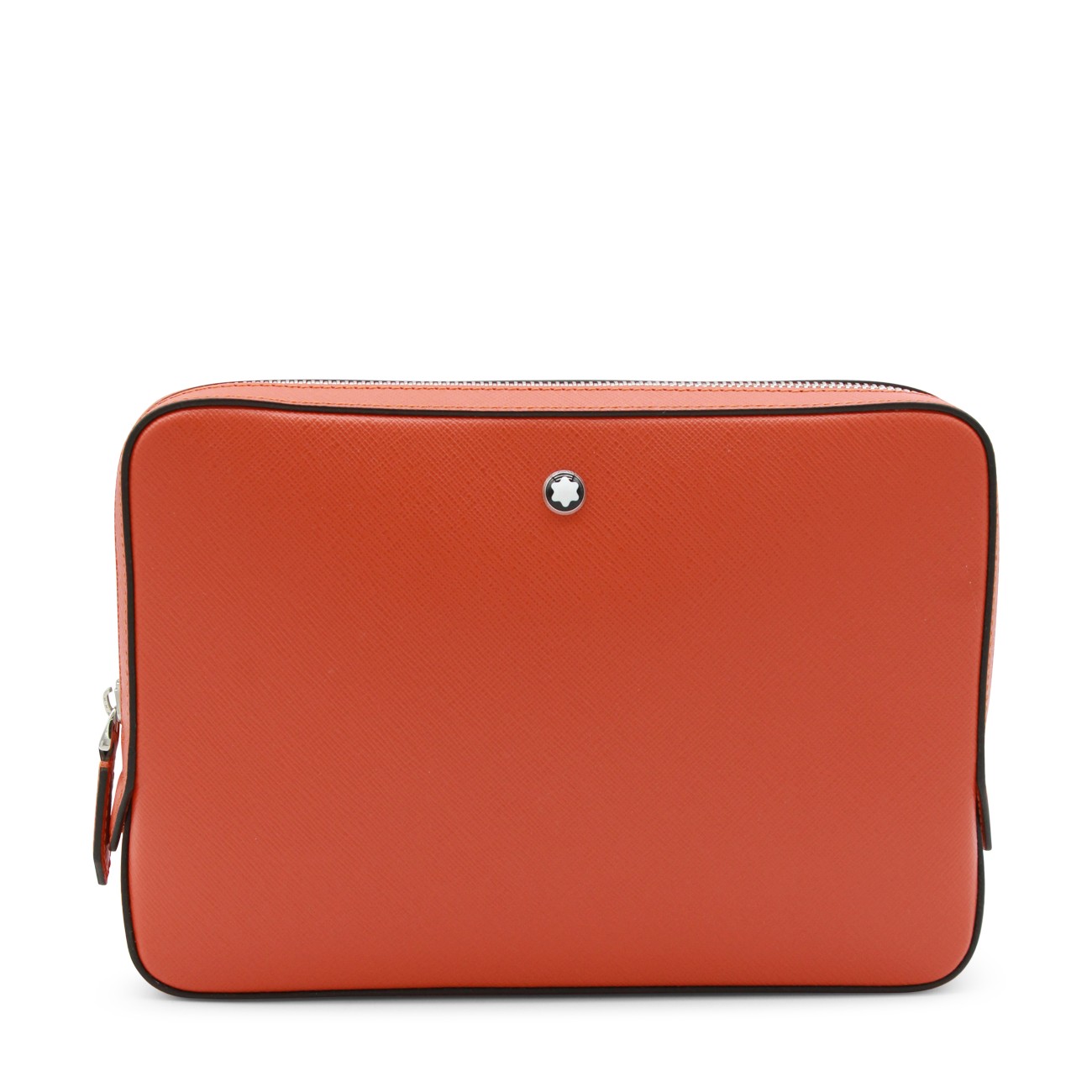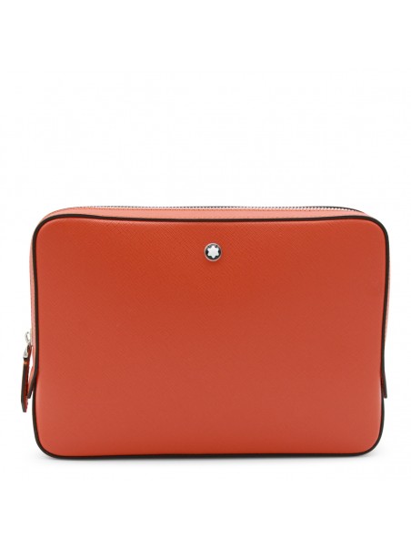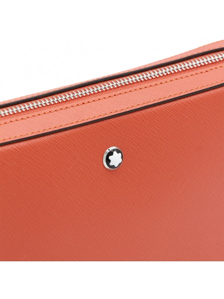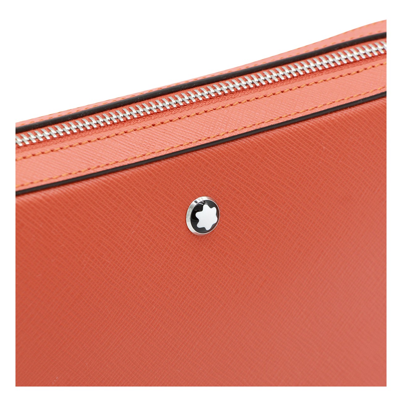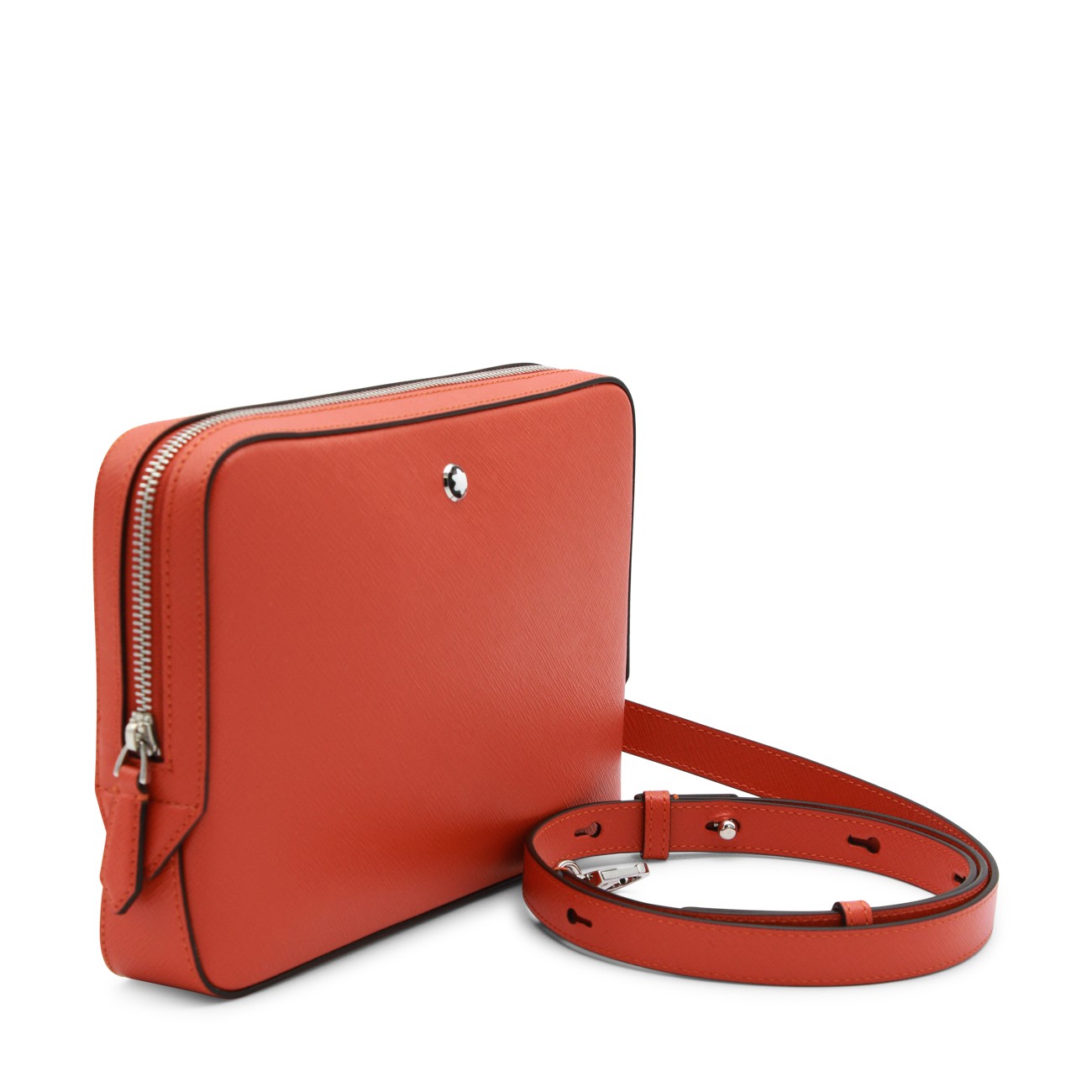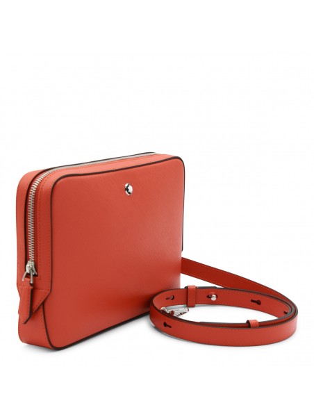 Tangerine leather crossbody bag from Montblanc featuring main compartment with zip fastening, frontal logo and removable and adjustable shoulder strap.