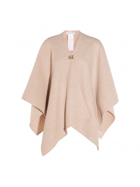 Beige Serra capes from Max Mara featuring v neckline, irregular hem and midi length.