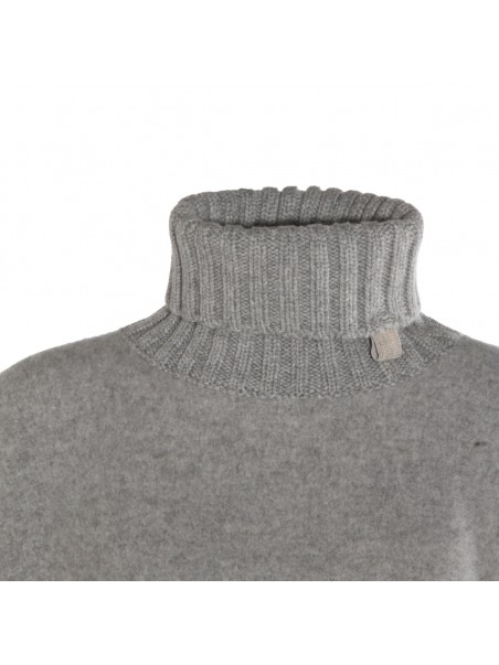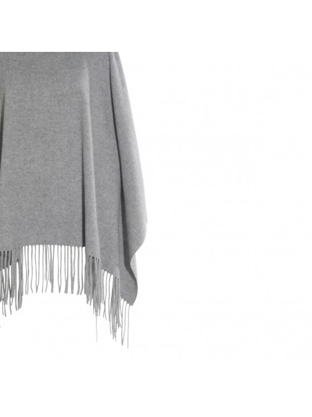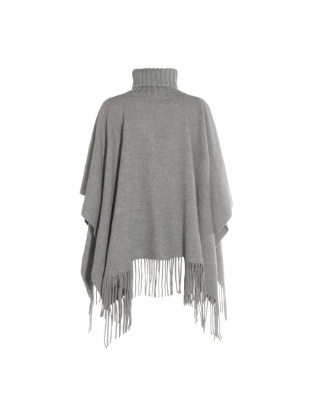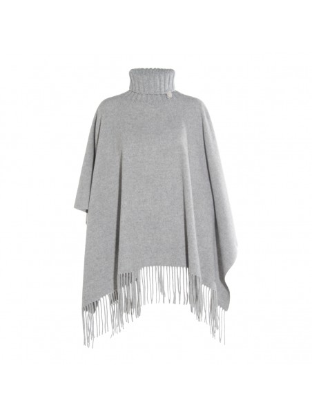 Grey wool capes from Fabiana Filippi featuring high collar, sleeveess, fringed hem and regular vestibility.