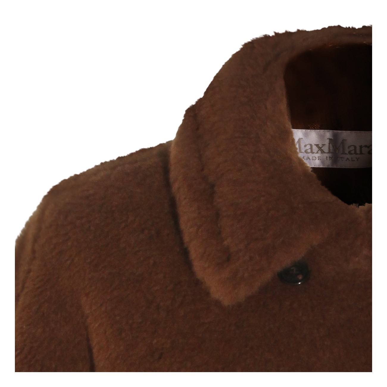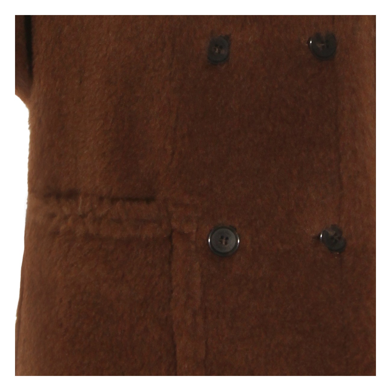 Brown wool cape from Max Mara featuring shirt collar, wide sleeves, faux fur, buttons fastening and pockets.