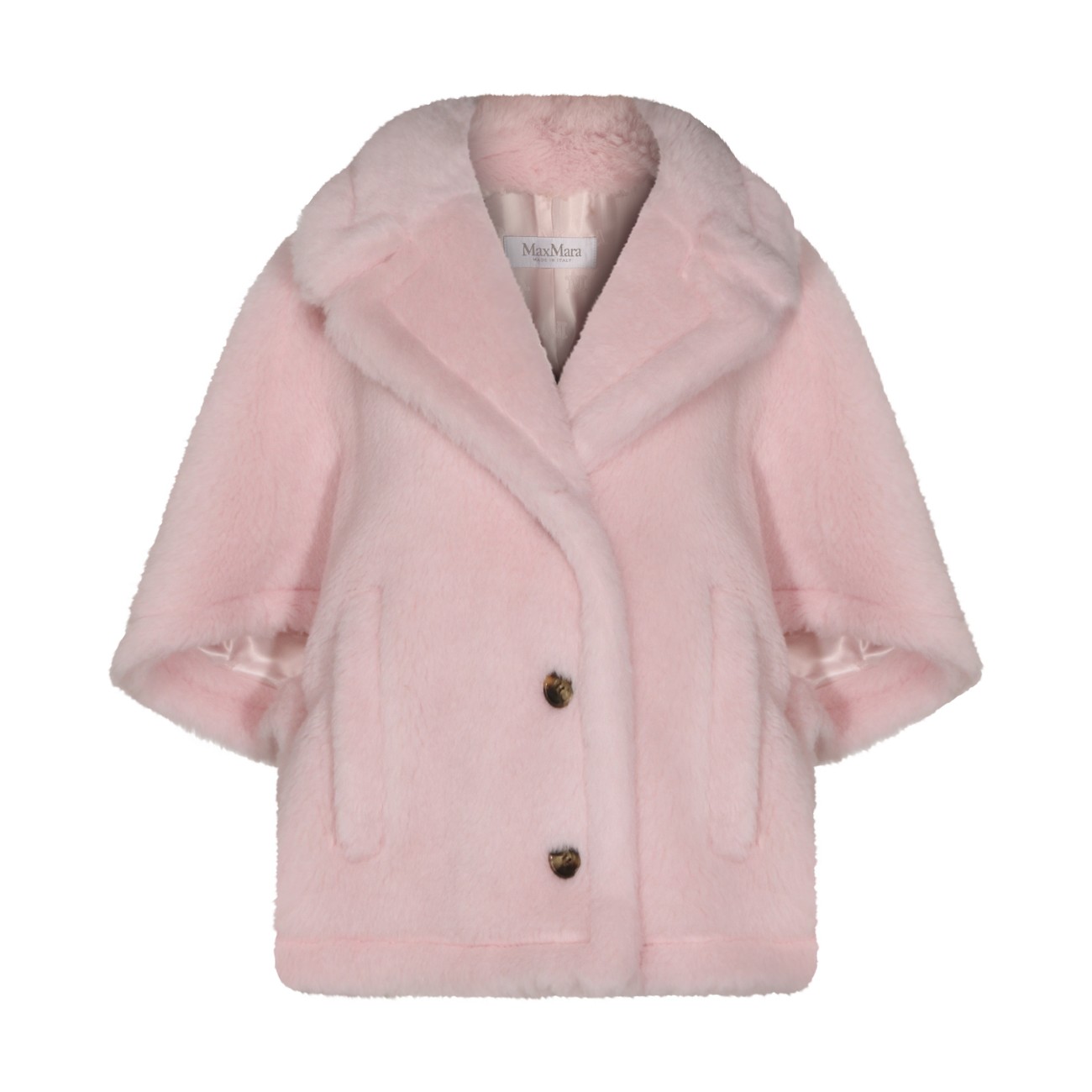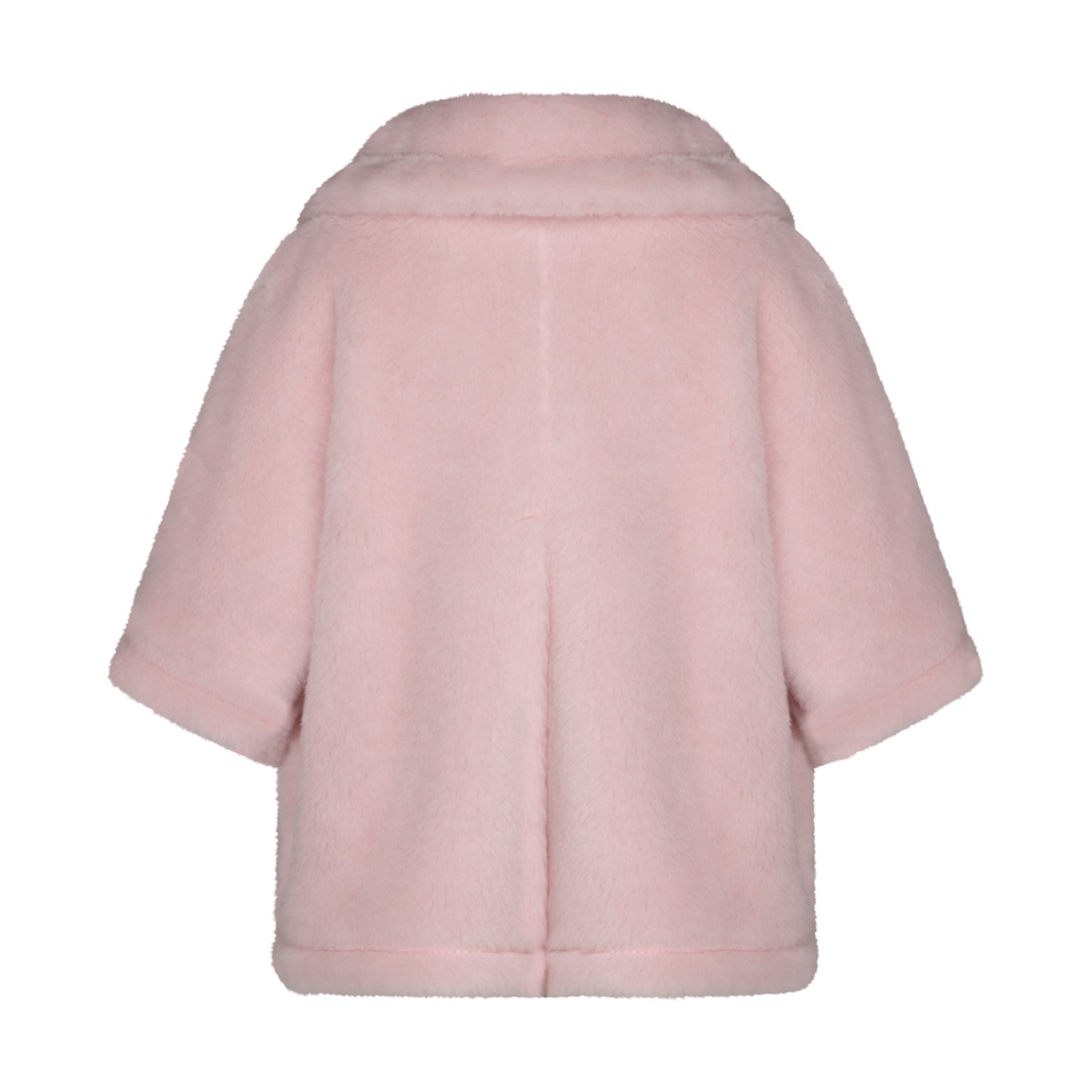 Pink wool blend cape from Max Mara featuring faux fur, wide sleeves, frontal buttons fastening, pockets and regular vestibility.