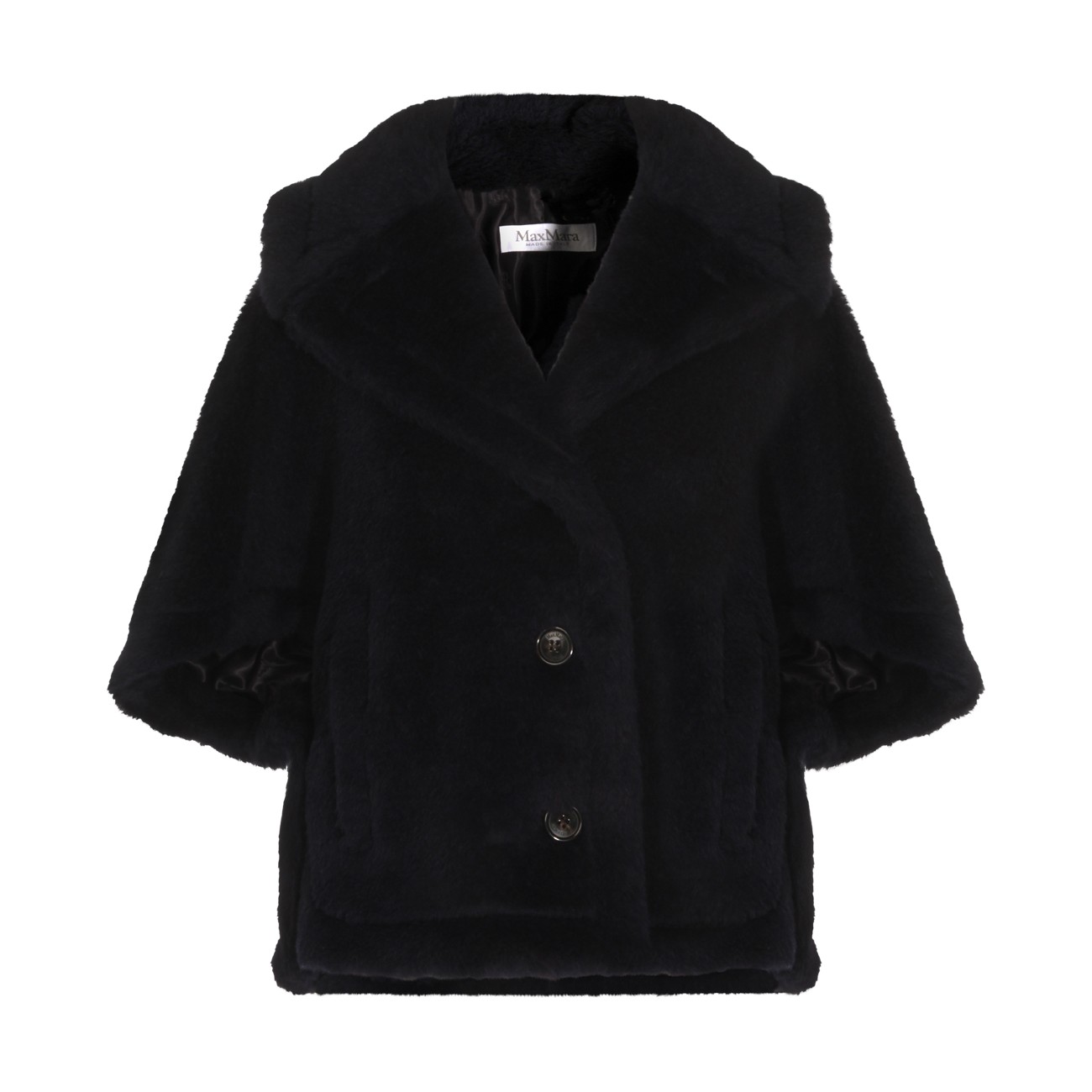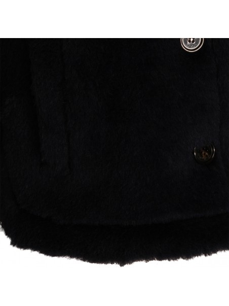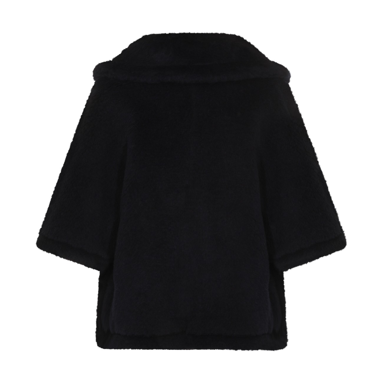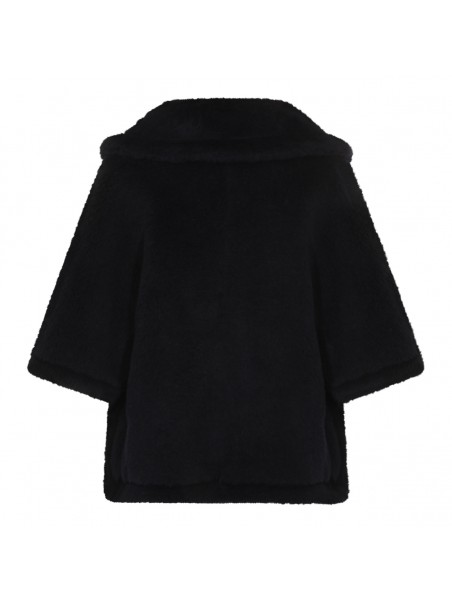 Blue wool blend cape from Max Mara featuring faux fur, wide sleeves, frontal buttons fastening, pockets and regular vestibility.
