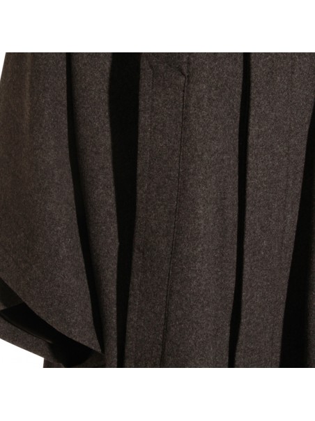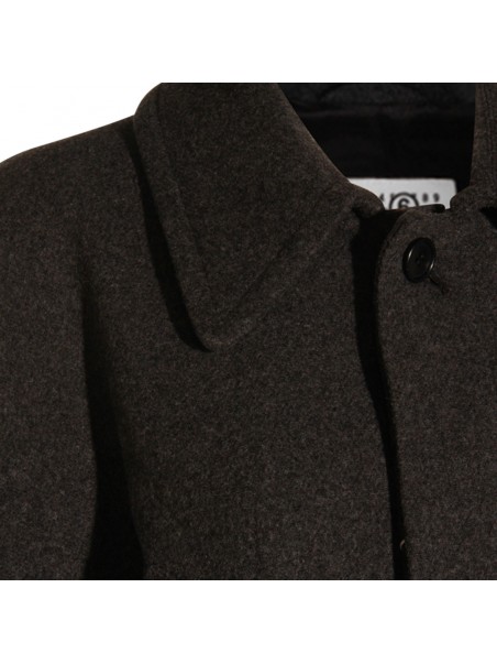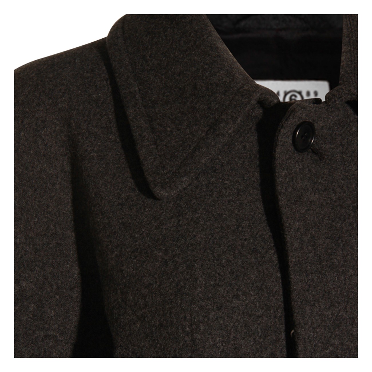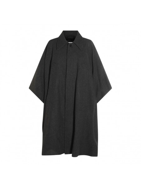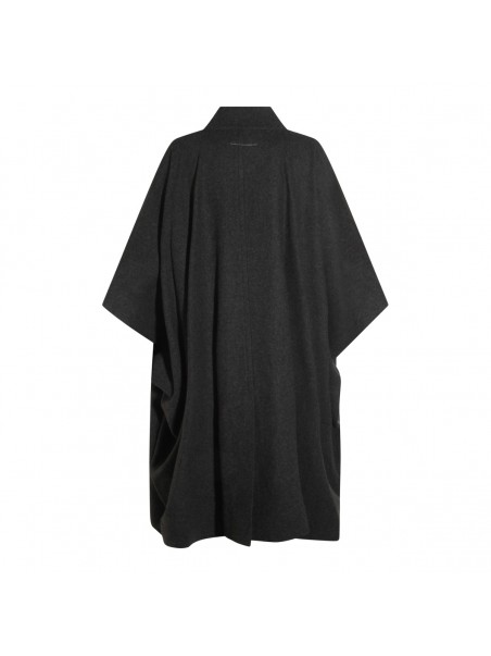 Dark greey wool capes from Mm6 Maison Margiela featuring frontal fastening, long sleeves, shirt collar and midi length.