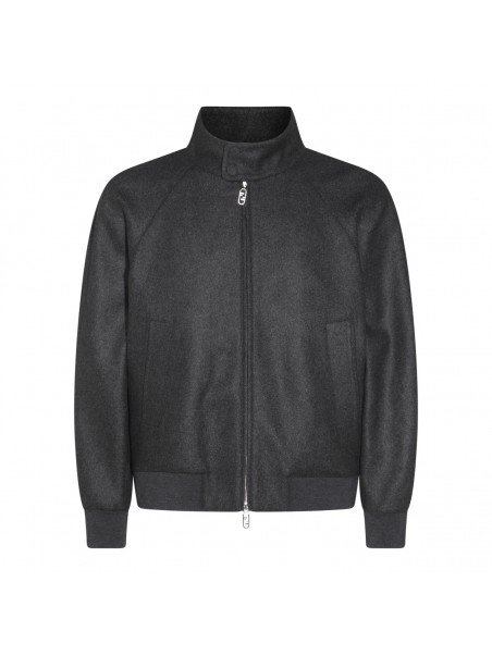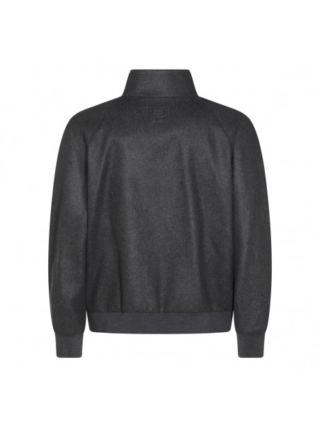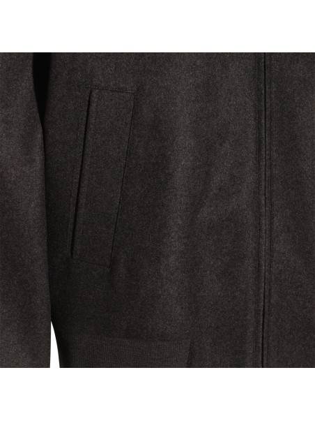 Dark grey wool casual jacket from Gendi featuring long sleeves, zip fastening, pockets, ribbed cuffs and hem and regular vestibility.