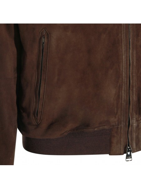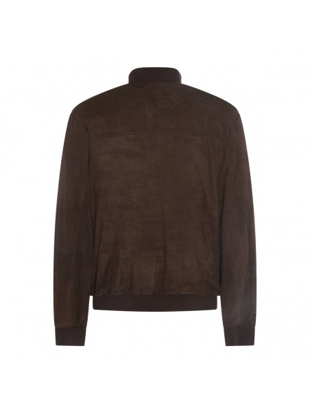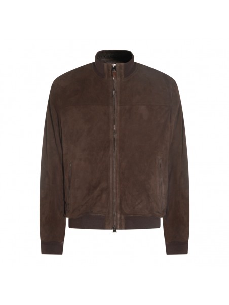 Brown leather jacket from Canali featuring long sleeves, zip fastening, high collar and regular vestibility.