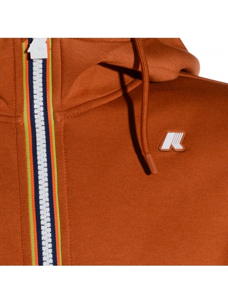 Orange Rainer Spacer casual jacket from K-Way featuring high collar, hood, long sleeves, zip fastening and regular vestibility.
