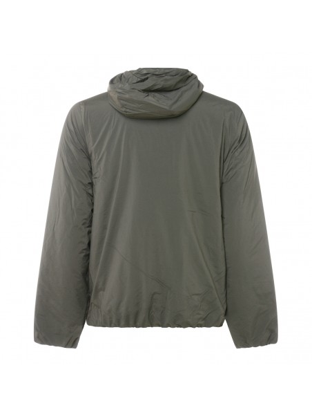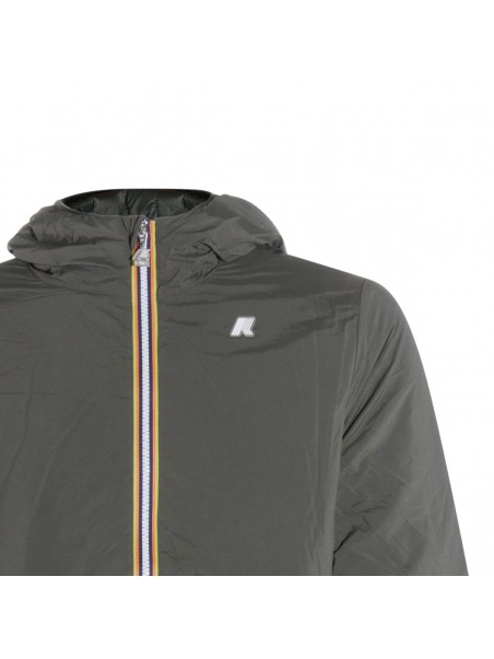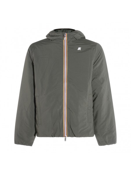 Green nylon Jack plain casual jacket from K-Way featuring high collar, hood, zip fastening and logo detail.