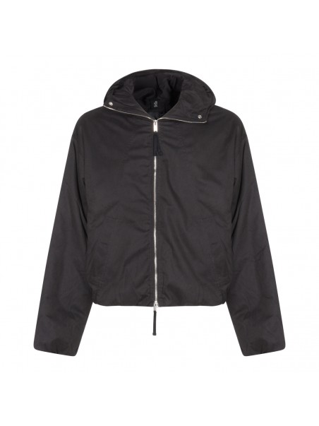 Black casual jacket from Thom Krom featuring long sleeves, zip fastening, pockets and silver tone hardware.