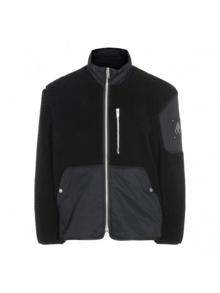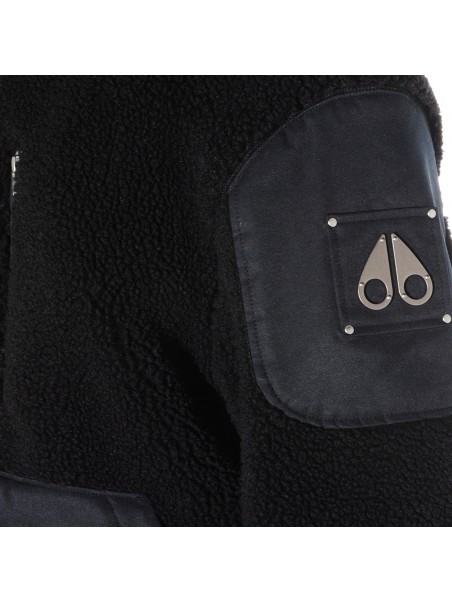 Black casual jacket from Moose Knuckles featuring long sleeves, zip fastening, pockets, logo patch and regular vestibility.
