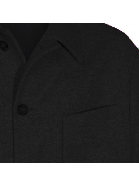 Black wool casual jacket from Hevo featuring classic collar, long sleeves, frontal buttons fastening, chest pocket, buttoned cuffs and regular vestibility.