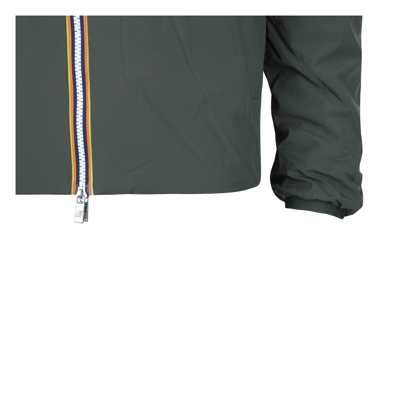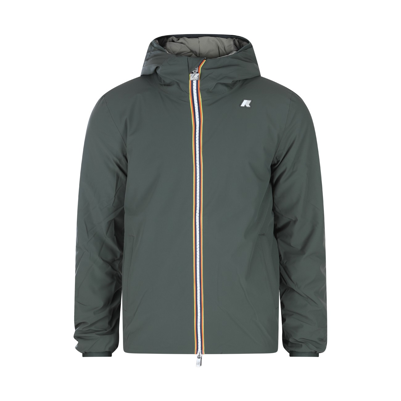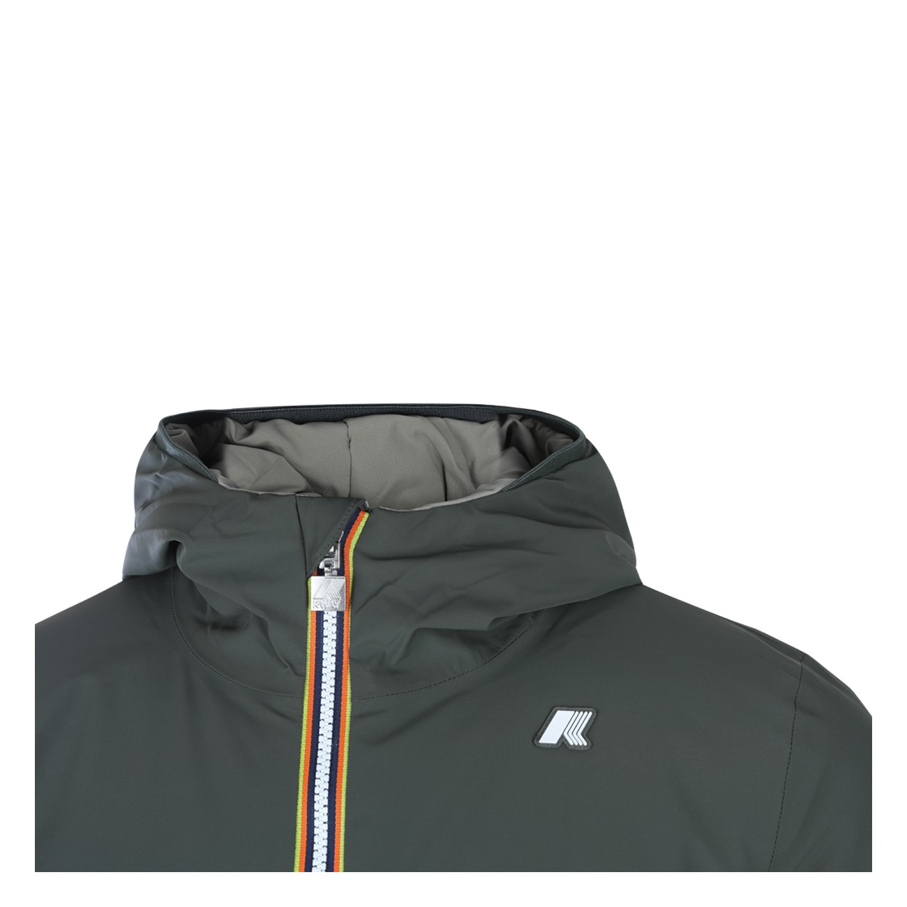Green Jack ST Warm Double casual jacket from K-Way featuring high collar, hood, long sleeves, padded, zip fastening, heart logo patch and regular vestibility.