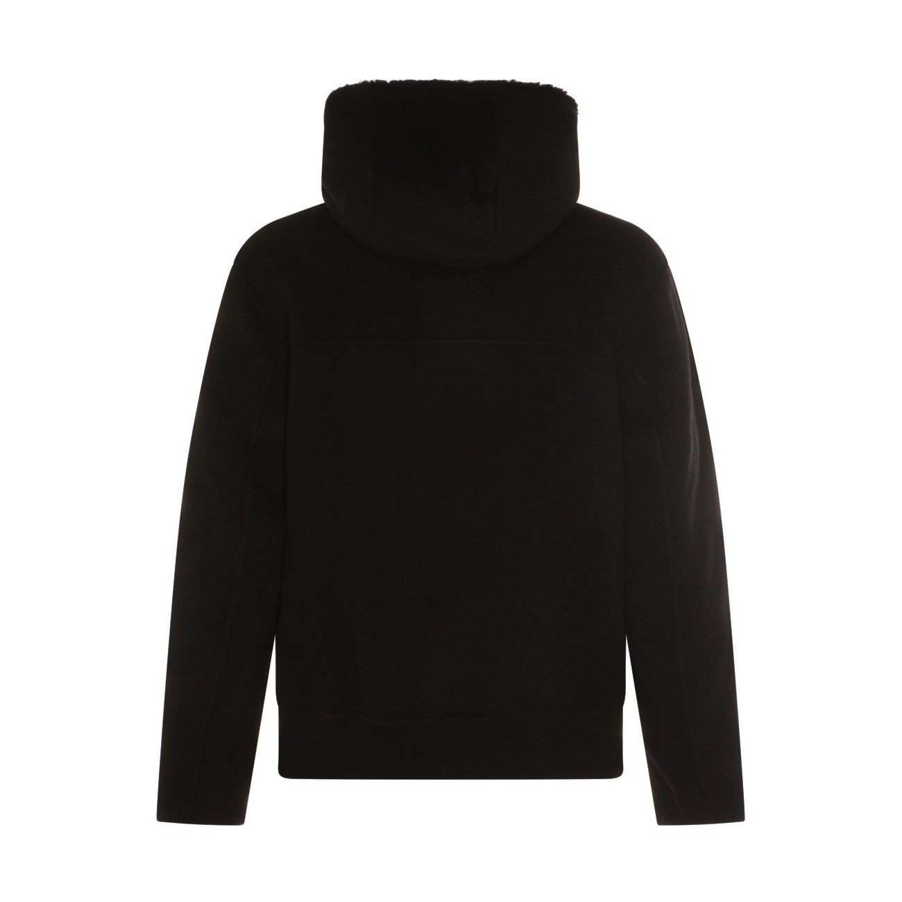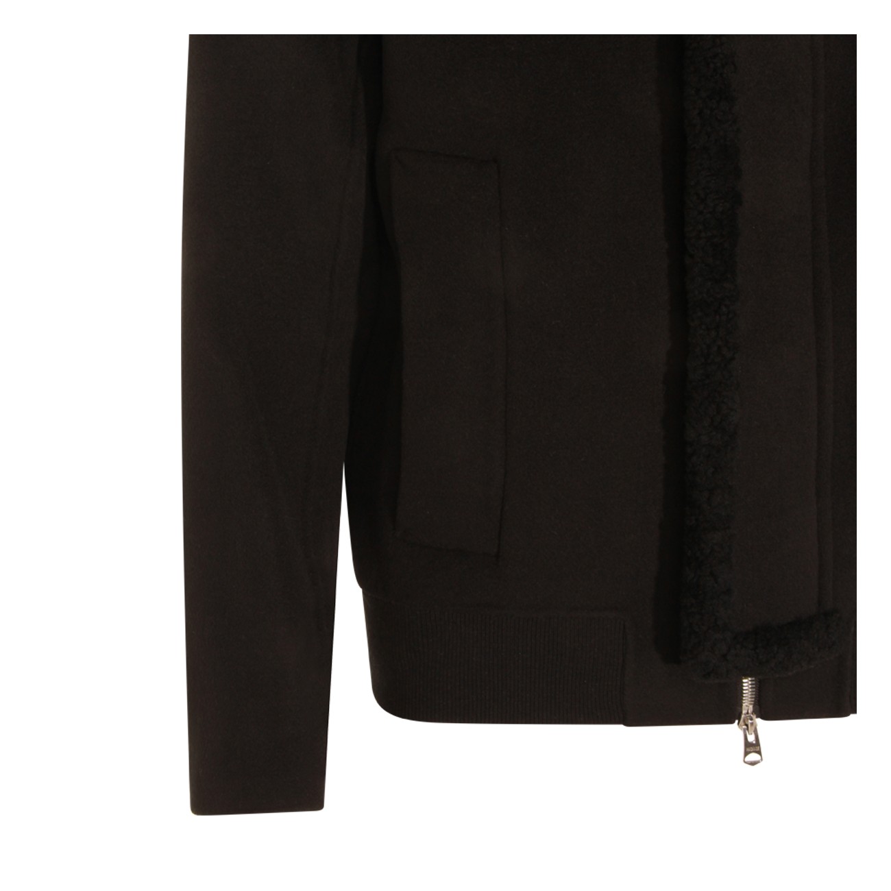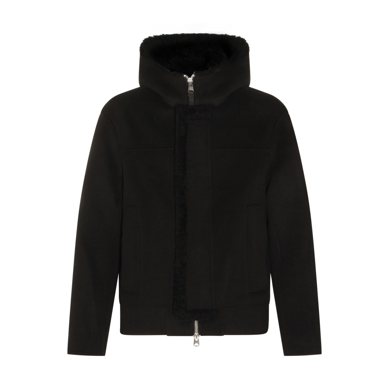 Black wool casual jacket from Mackage featuring high collar, hood, long sleeves, zip fastening and pockets.
