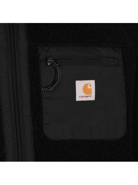 Black Prentis casual jacket from Carhartt WIP featuring high collar, long sleeves, zip fastening, pockets and regular vestibility.