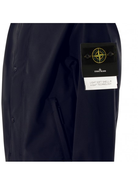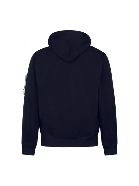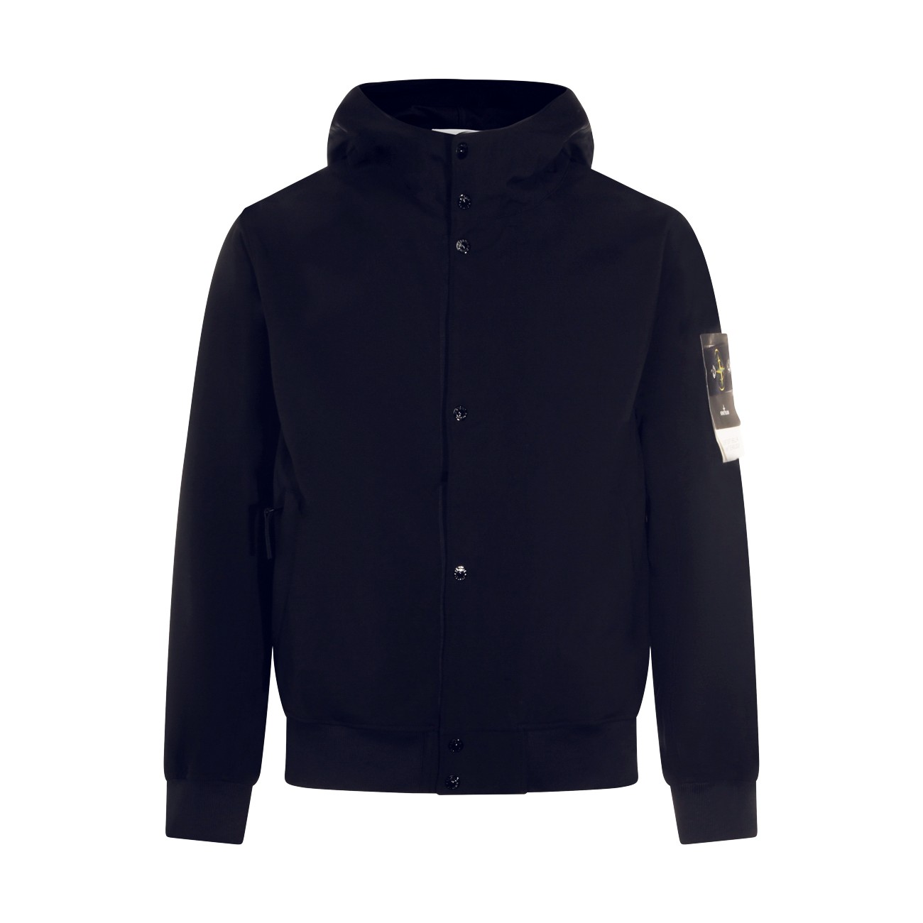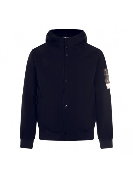 Navy casual jacket from Stone Island featurig hood, buttons fastening, long sleeves, lateral logo patch, pockets and regular vestibility.