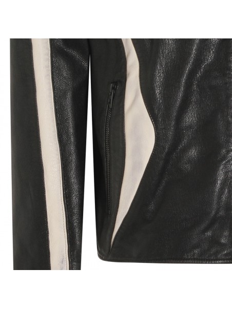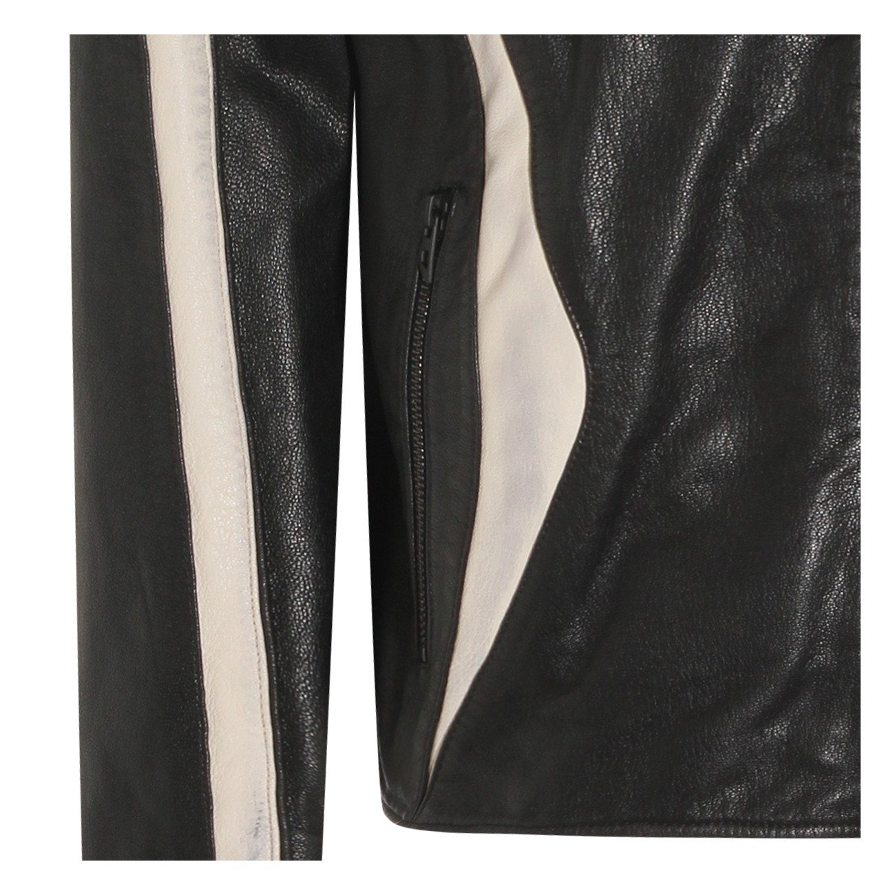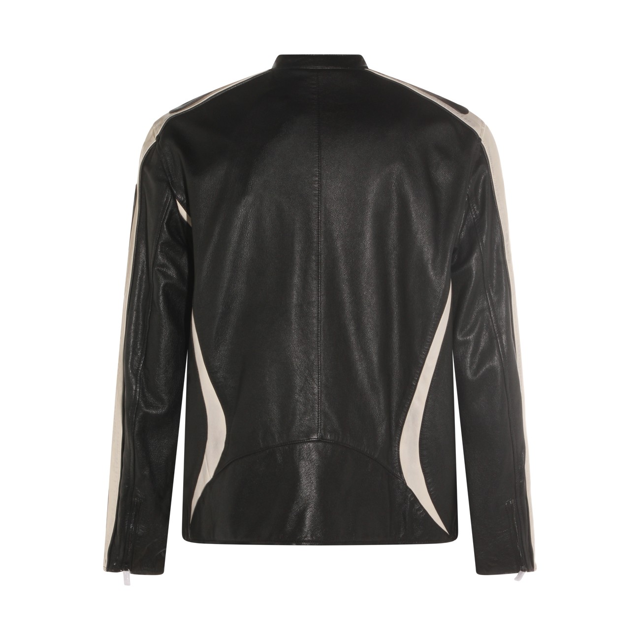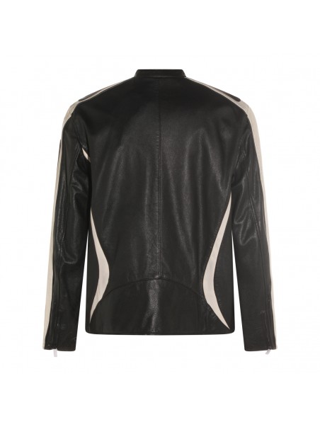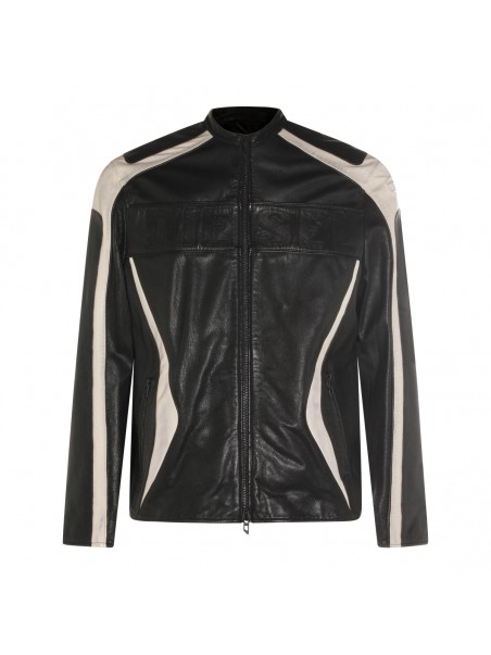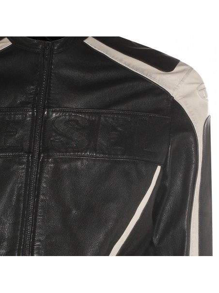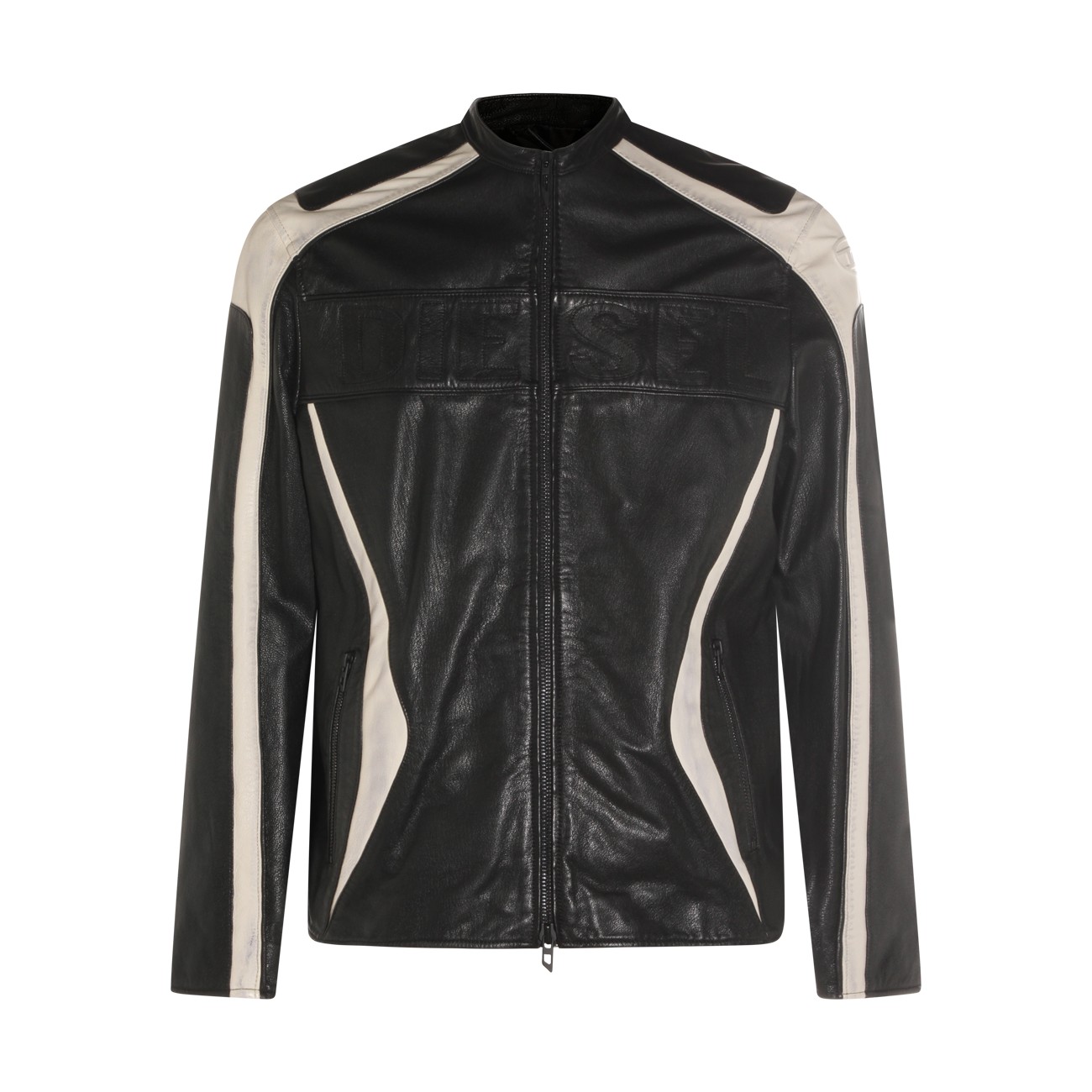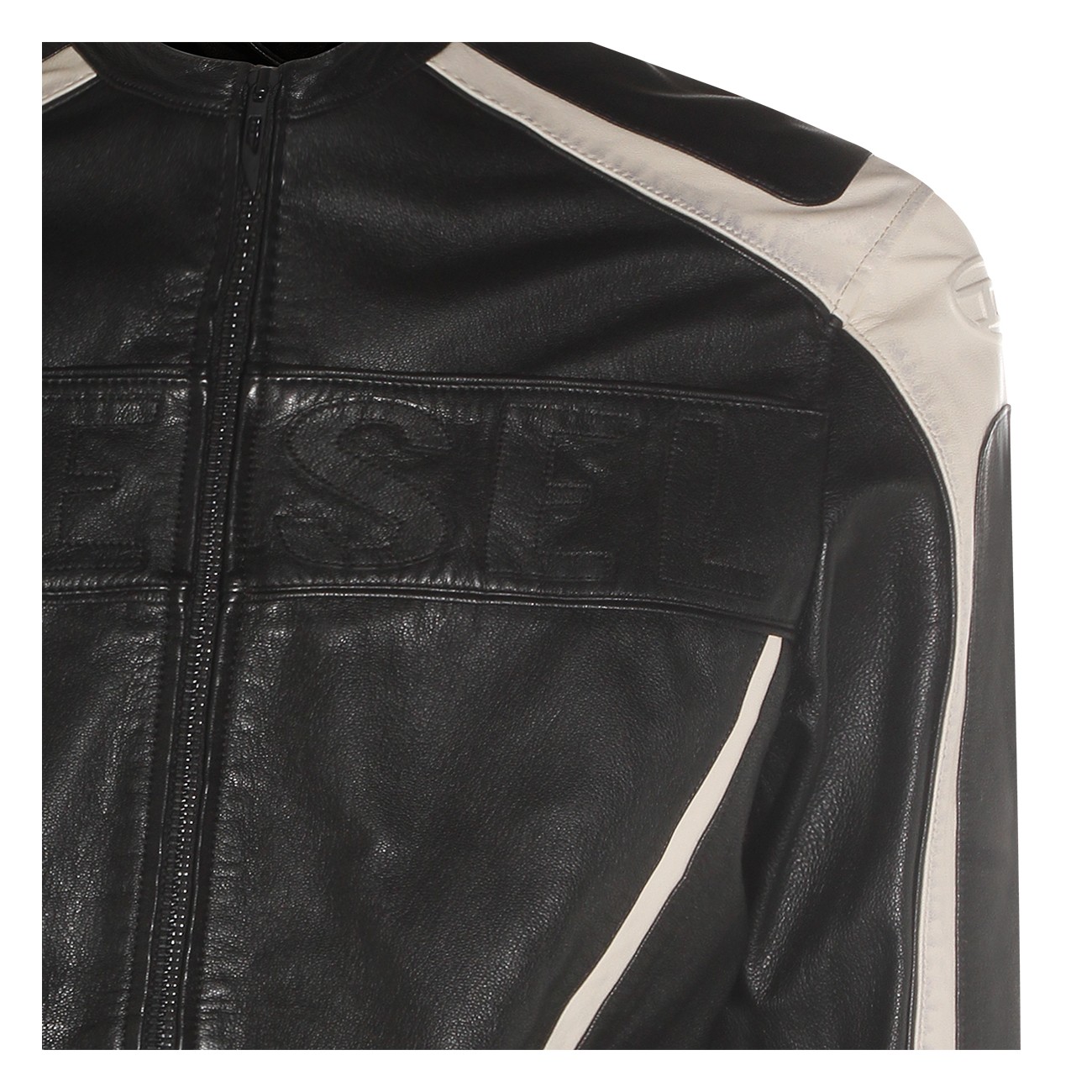Black leather jacket from Diesel featuring crew neck, zip fastening, long sleeves, pockets, frontal logo, contrasting details and regular vestibility.