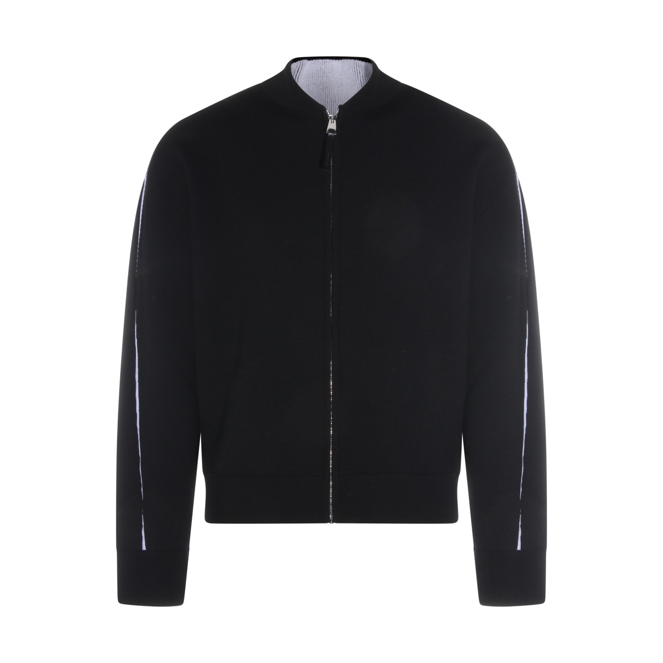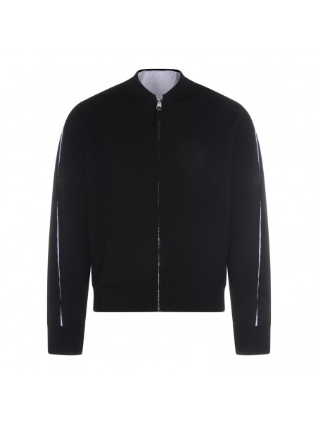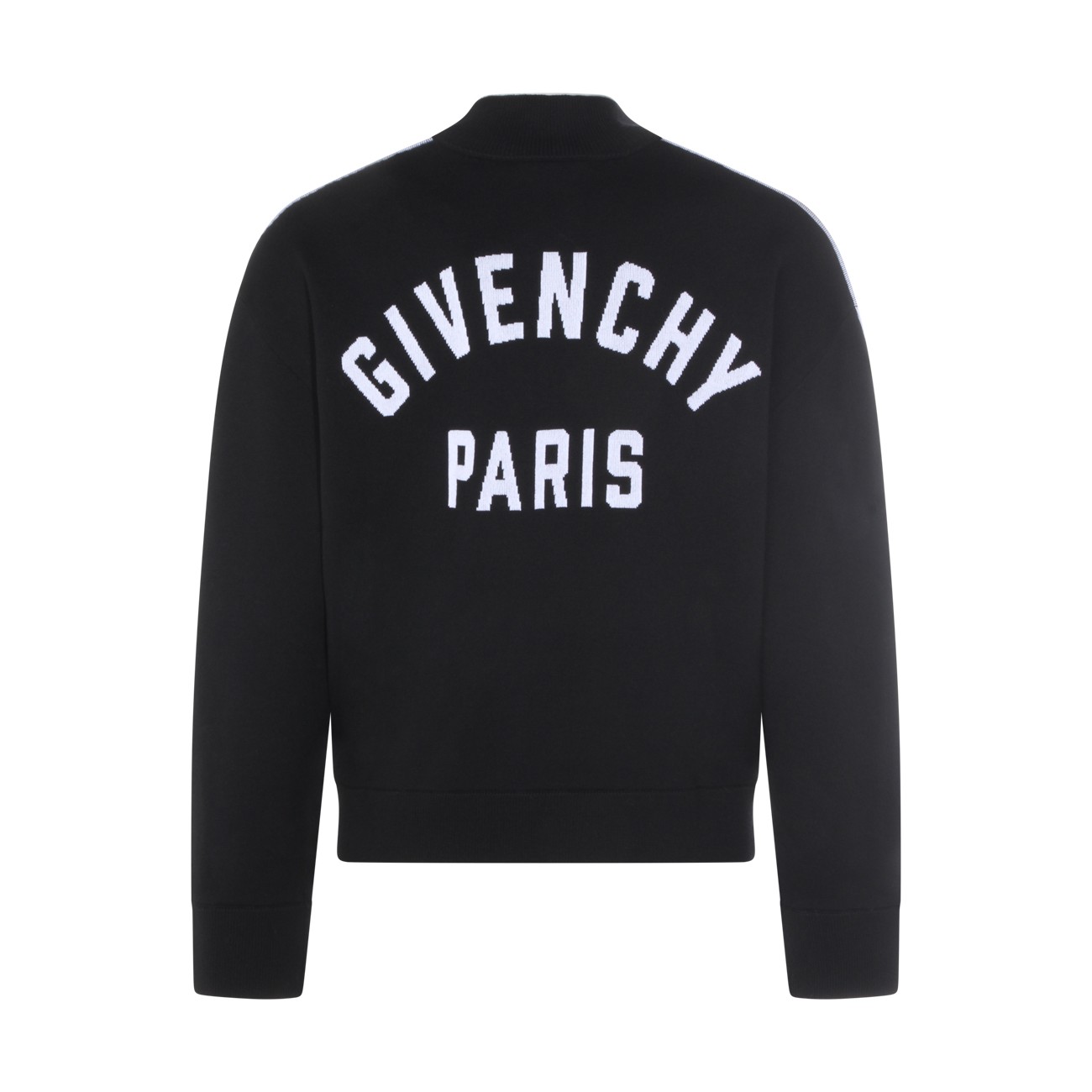 Black wool blend casual jacket from Givenchy featuring high neck, zip fastening, long sleeves and back logo.