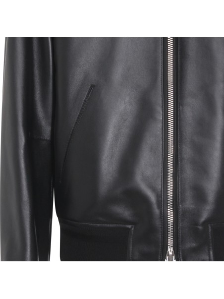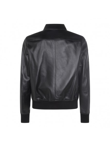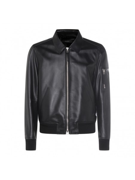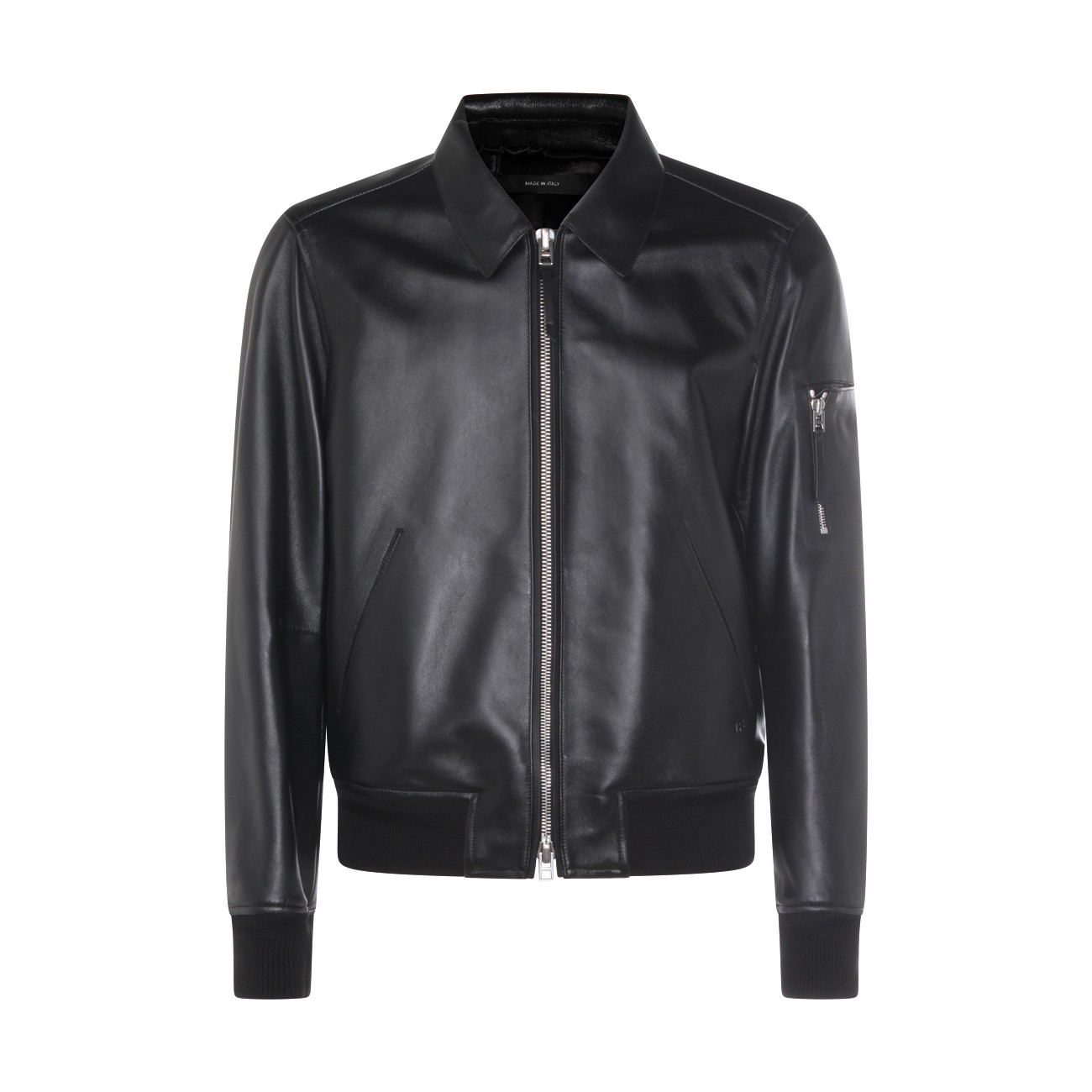 Black leather jacket from Tom Ford featuring shirt collar, zip fastening, long sleeves, pockets and regular vestibility.