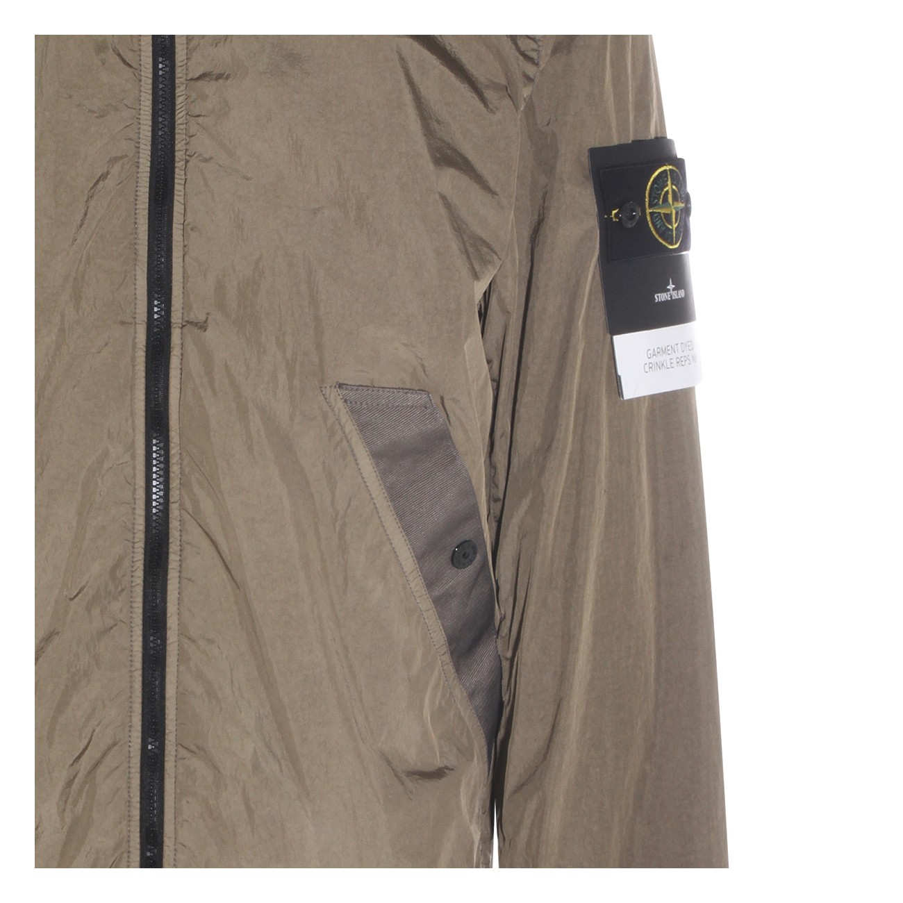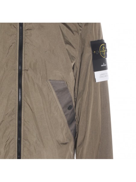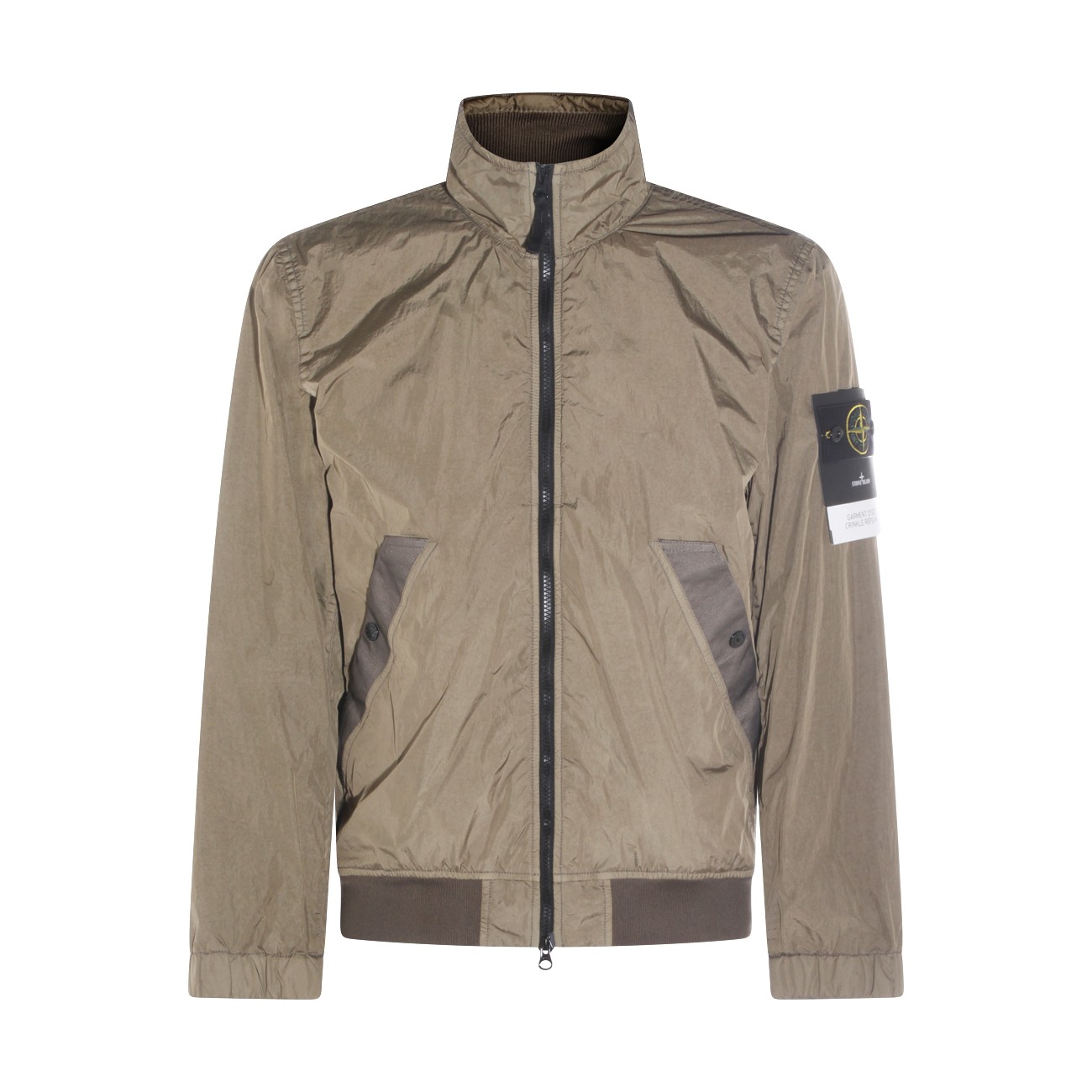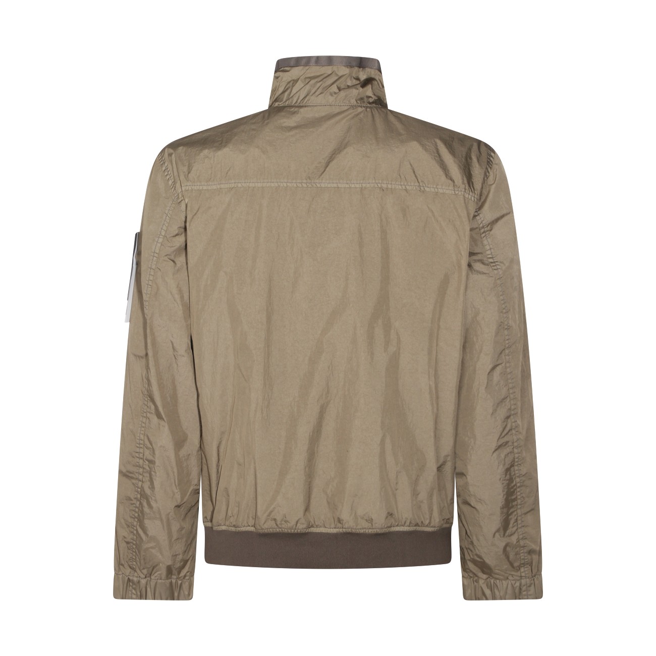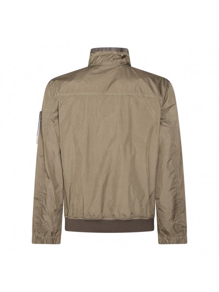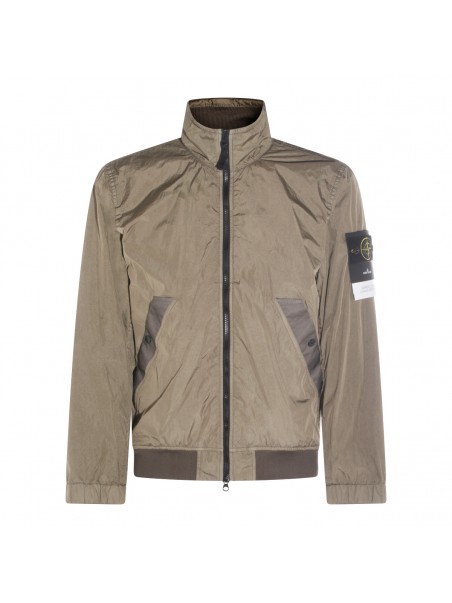 Military green casual jacket from Stone Island featuring long sleeves, zip closure at front, high neck, side pockets and logo label.