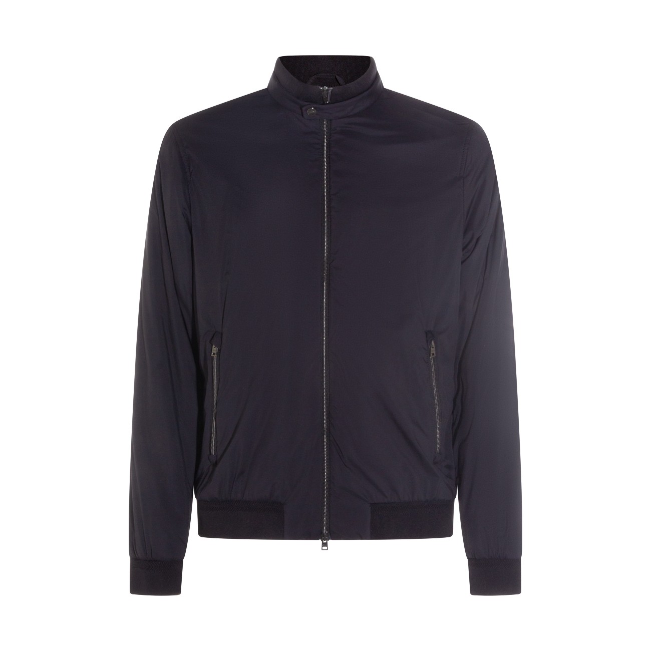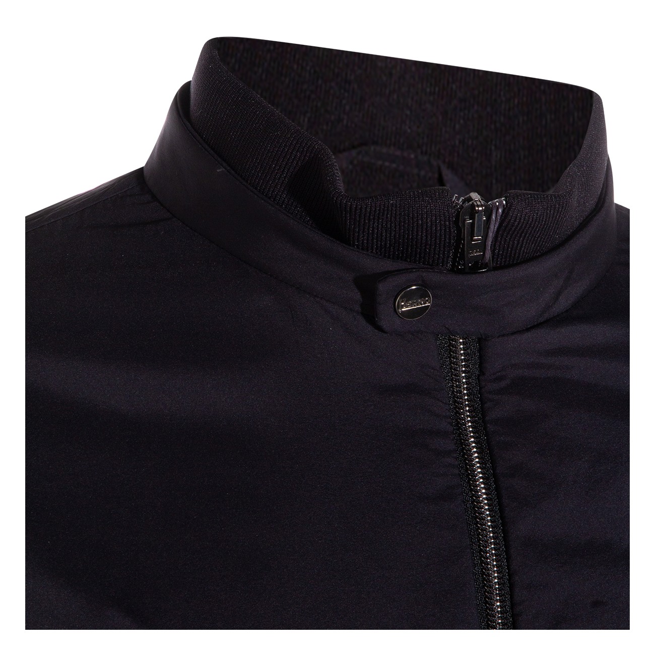 Black casual jacket from Herno featuring high collar, button and zip fastening, long sleeves, zipped pockets and regular vestibility.