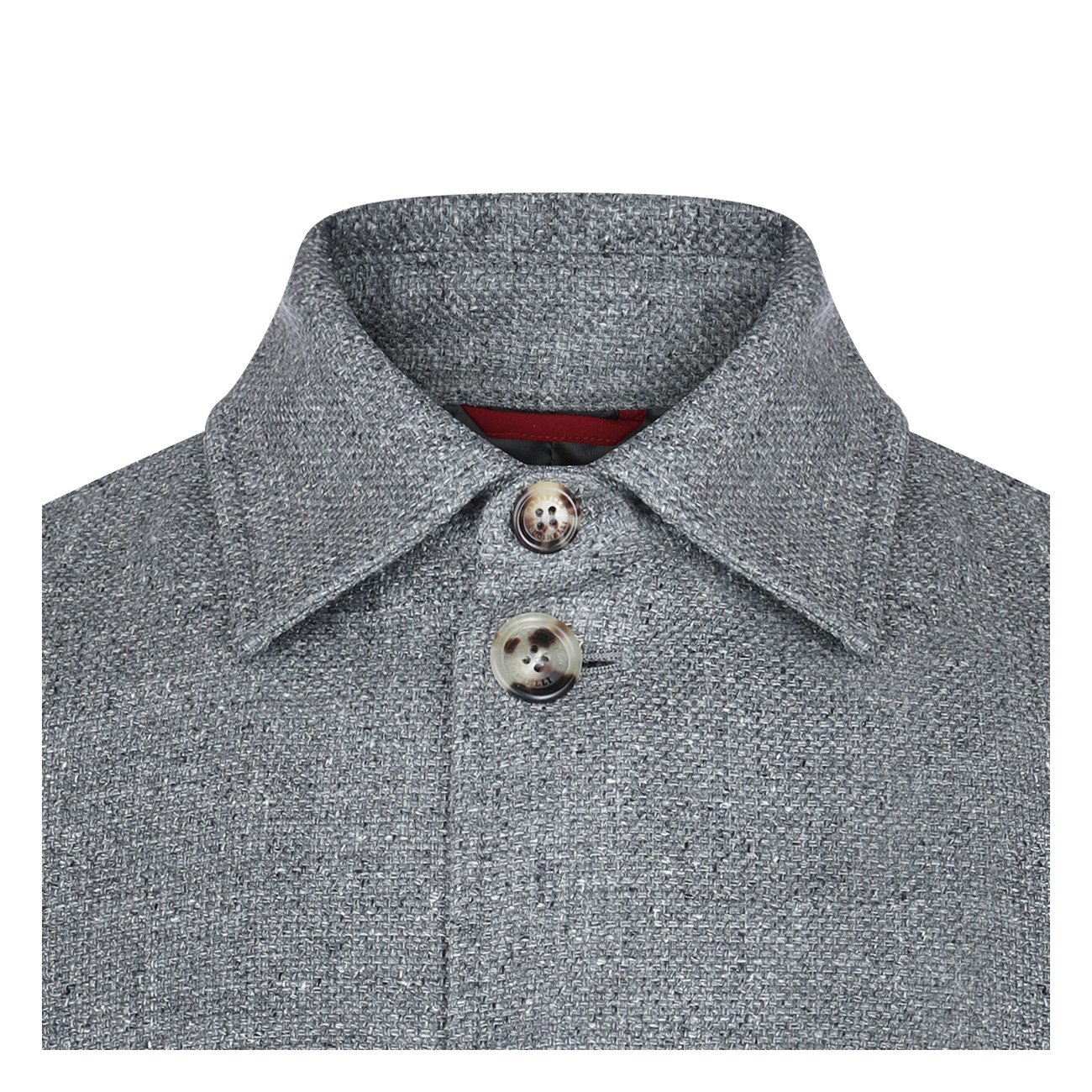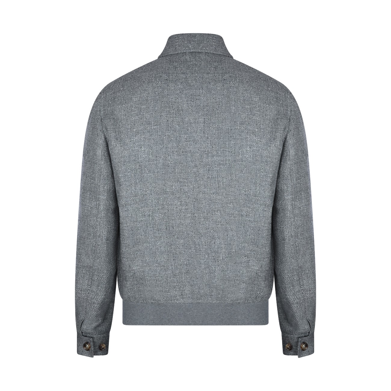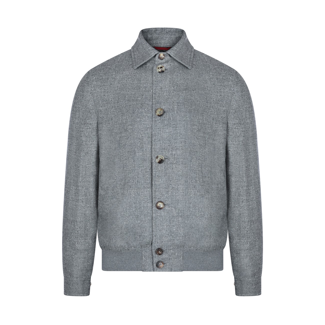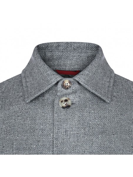 Grey silk blend casual jacket from Brunello Cucinelli featuring shirt collar, buttons fastening, long sleeves, lateral pockets and regular vestibility.