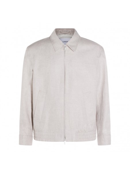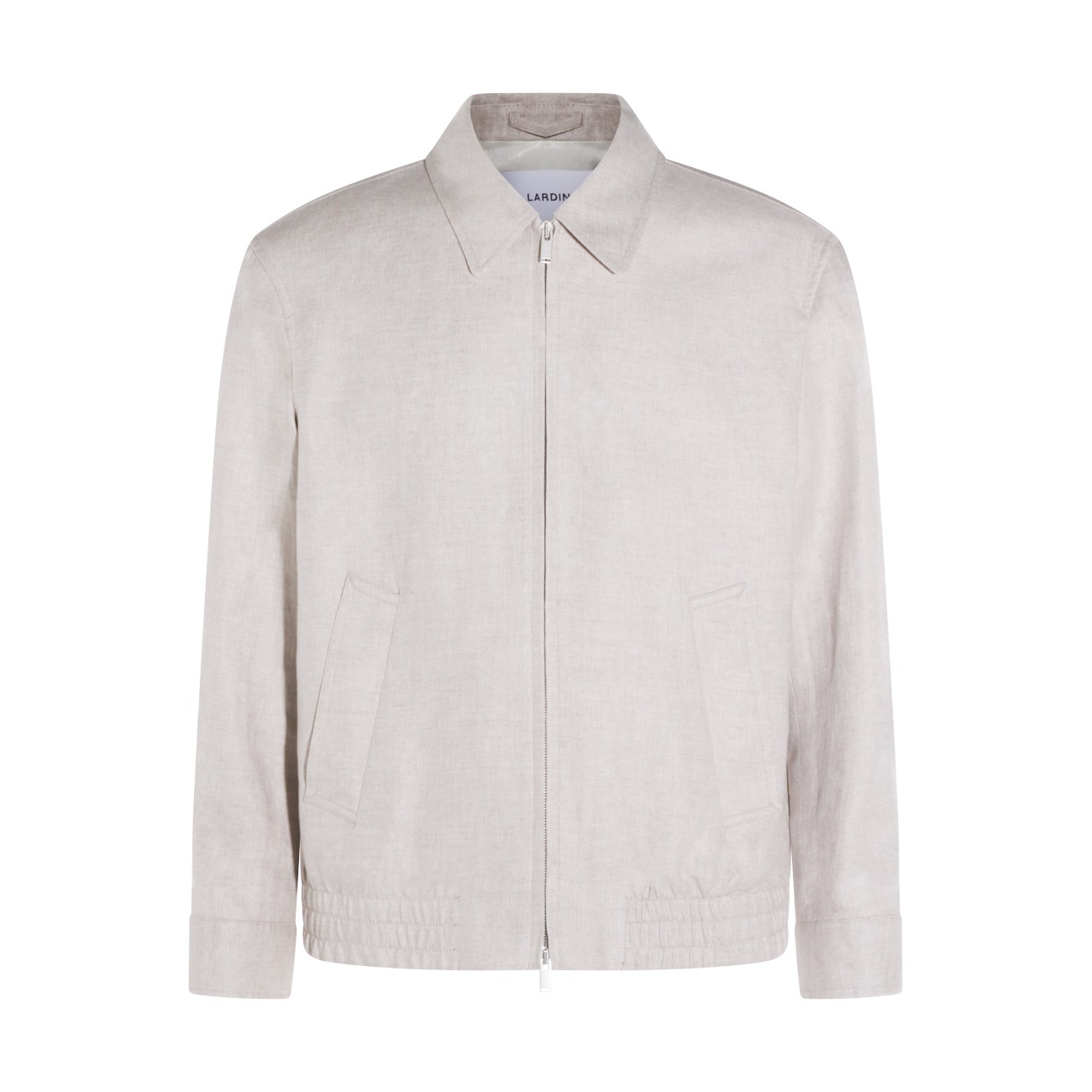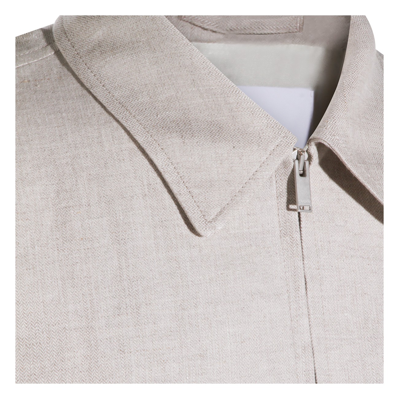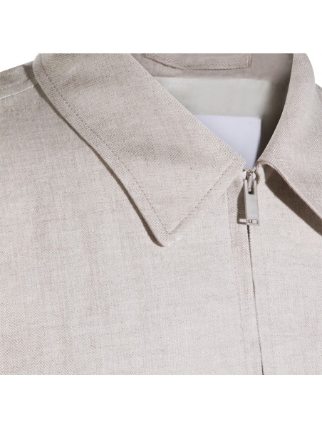 Sand linen casual jacket from Lardini featuring long sleeves, zip closure, shirt collar, side pockets and regular fit.