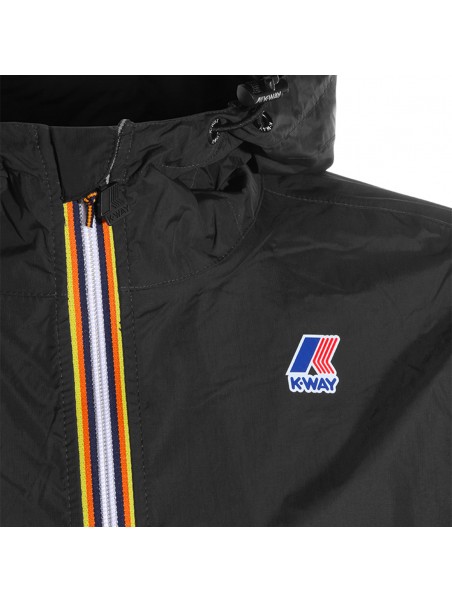 Black pure claude casual jacket from K-Way featuring long sleeves. zip fastening, frontal logo, hood, front pockets and regular fit.