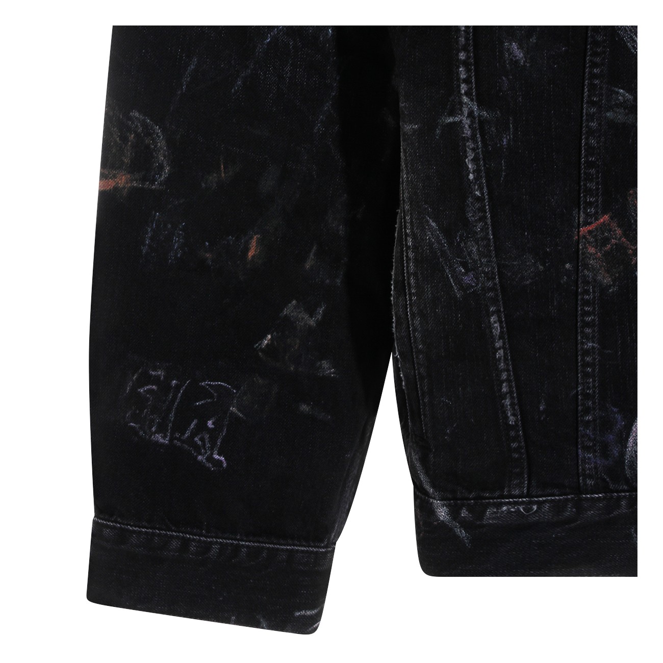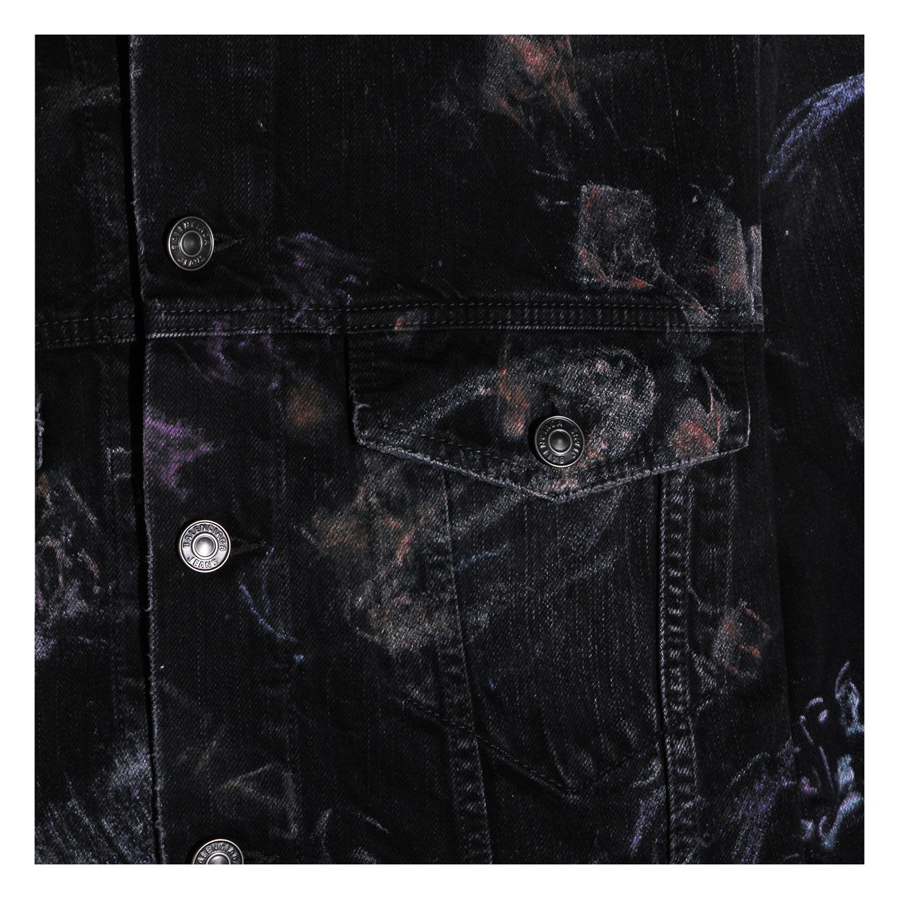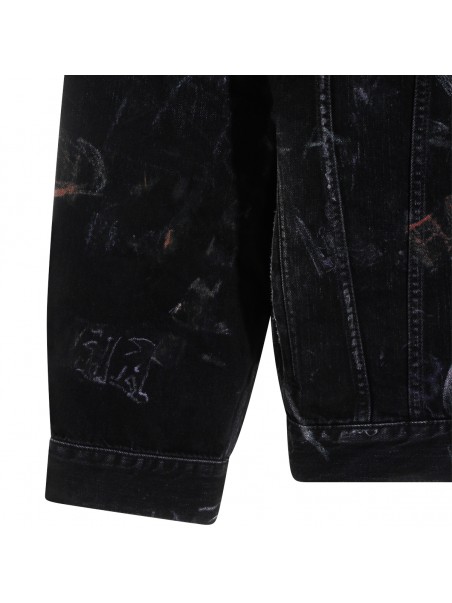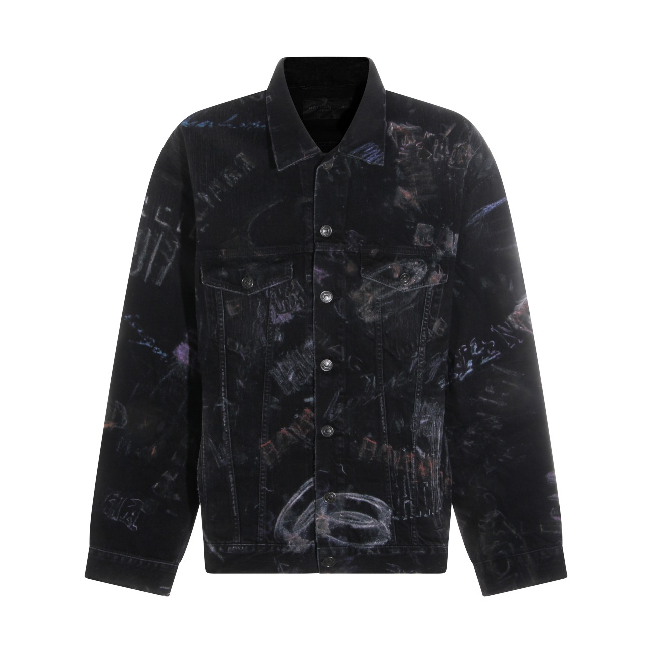Black cotton denim jacket from Balenciaga featuring long sleeves, buttons fastening, shirt collar, all over details, frontal pockets and regular vestibility.