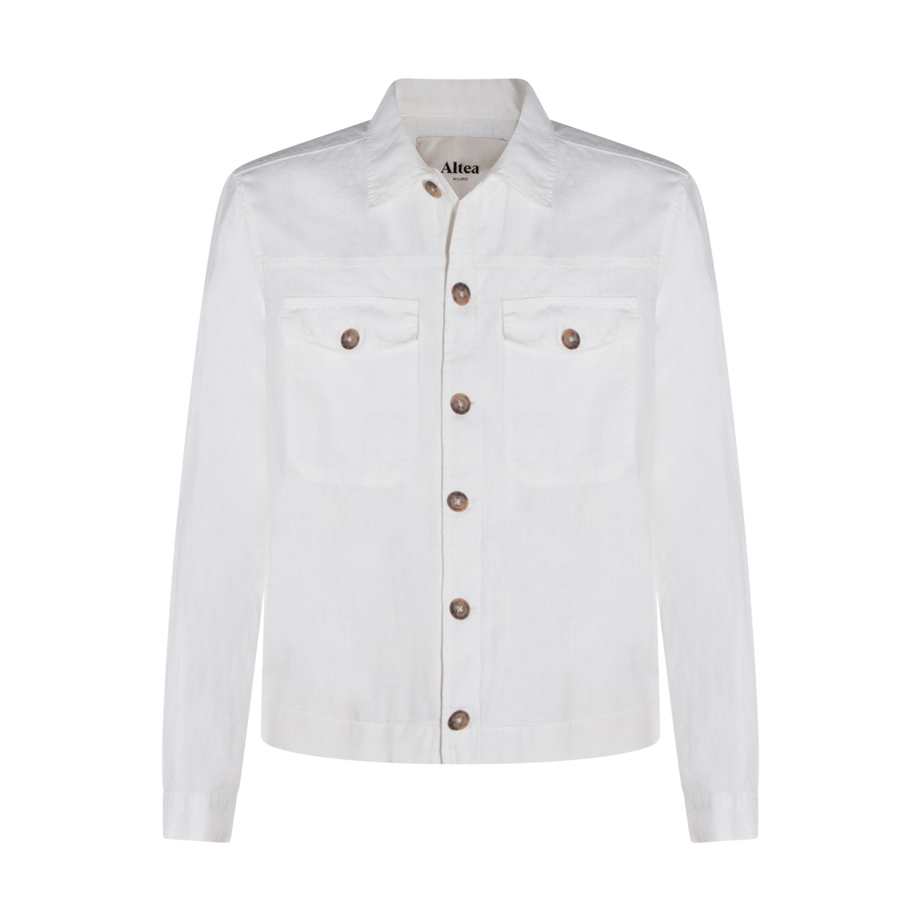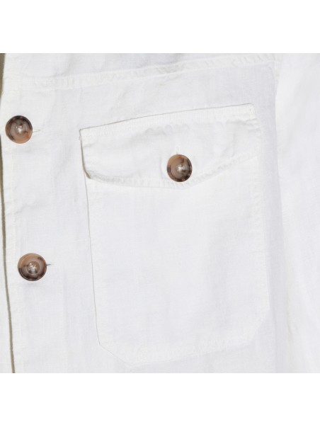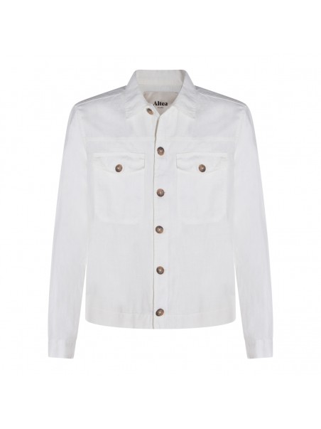 White linen casual jacket from Altea featuring long sleeves, shirt collar, buttons fastening, frontal pockets with button fastening and regular vestibility.