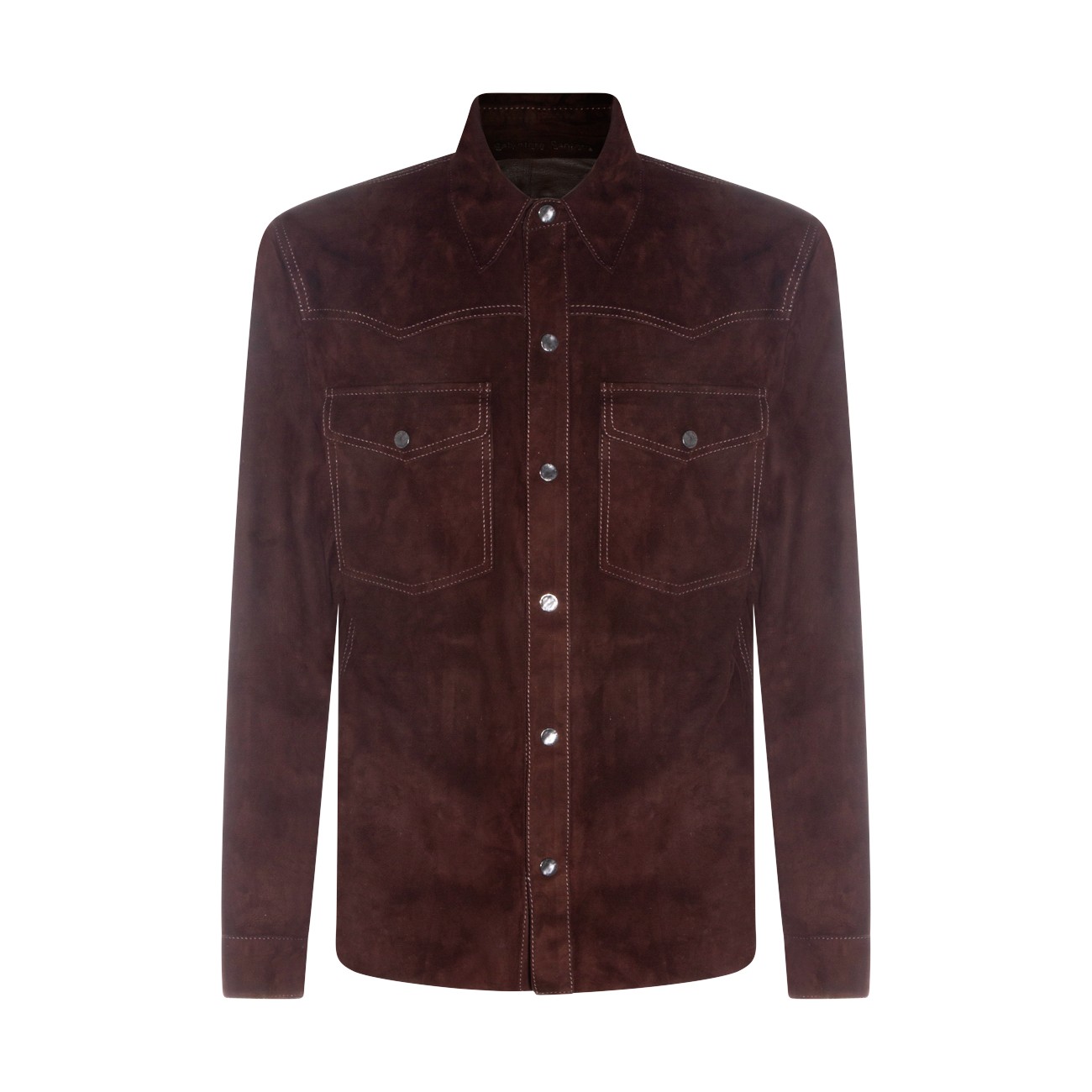 Brown leather jacket from Salvatore Santoro featuring long sleeves, buttons fastening, frontal pockets with buttons fastening, shirt collar and regular vestibility.