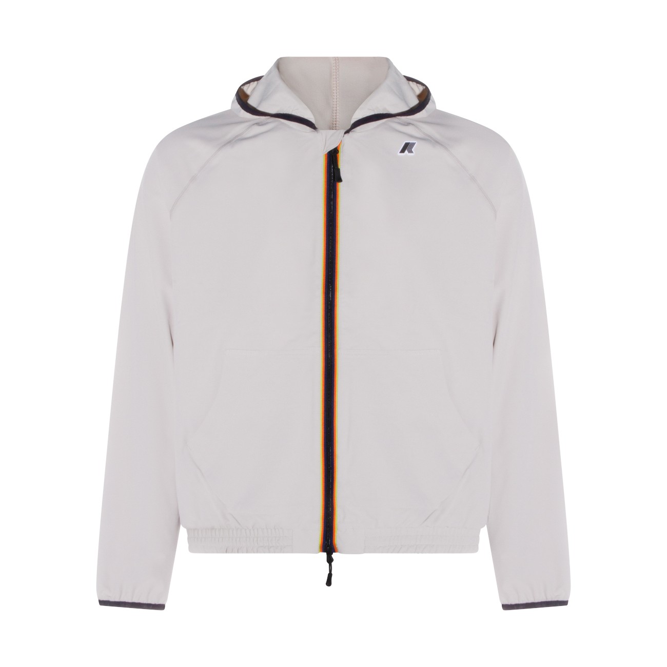 Light beige Sia casual jacket from K-Way featuring long sleeves, zip fastening, hood, pockets, frontal logo at chest and regular vestibility.
