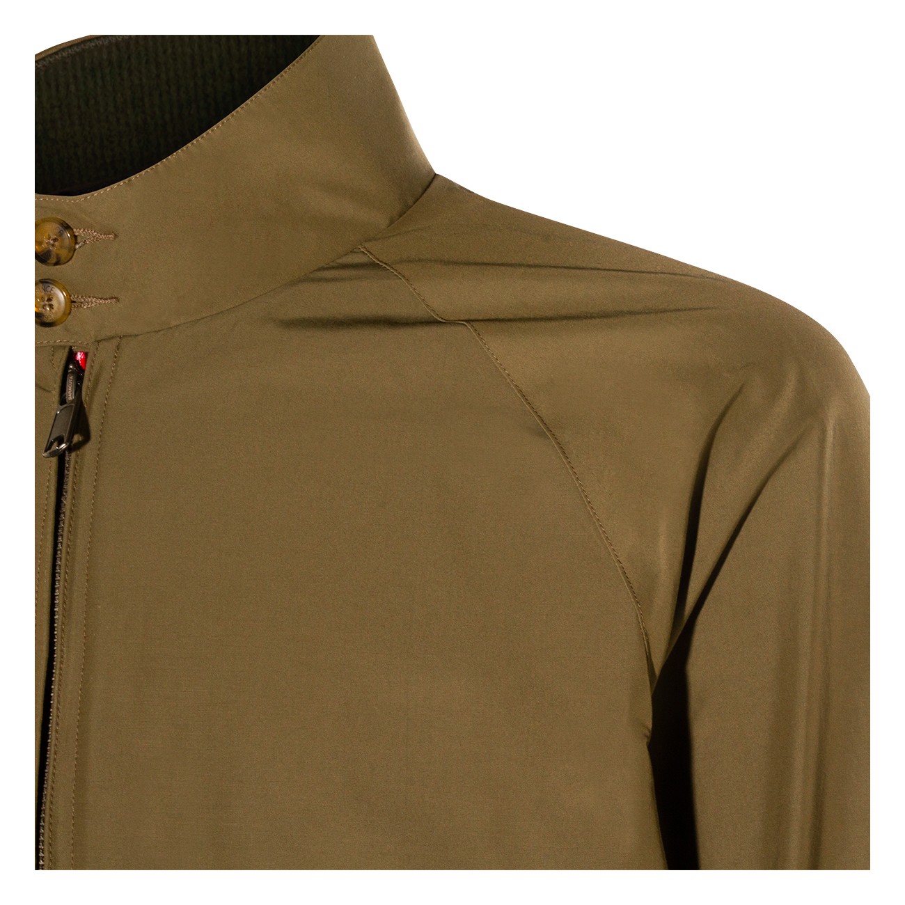 Military green G9 casual jacket from Baracuta featuring long sleeves, zip and buttons fastening, high neck, frontal pockets with button fastening and regular vestibility.