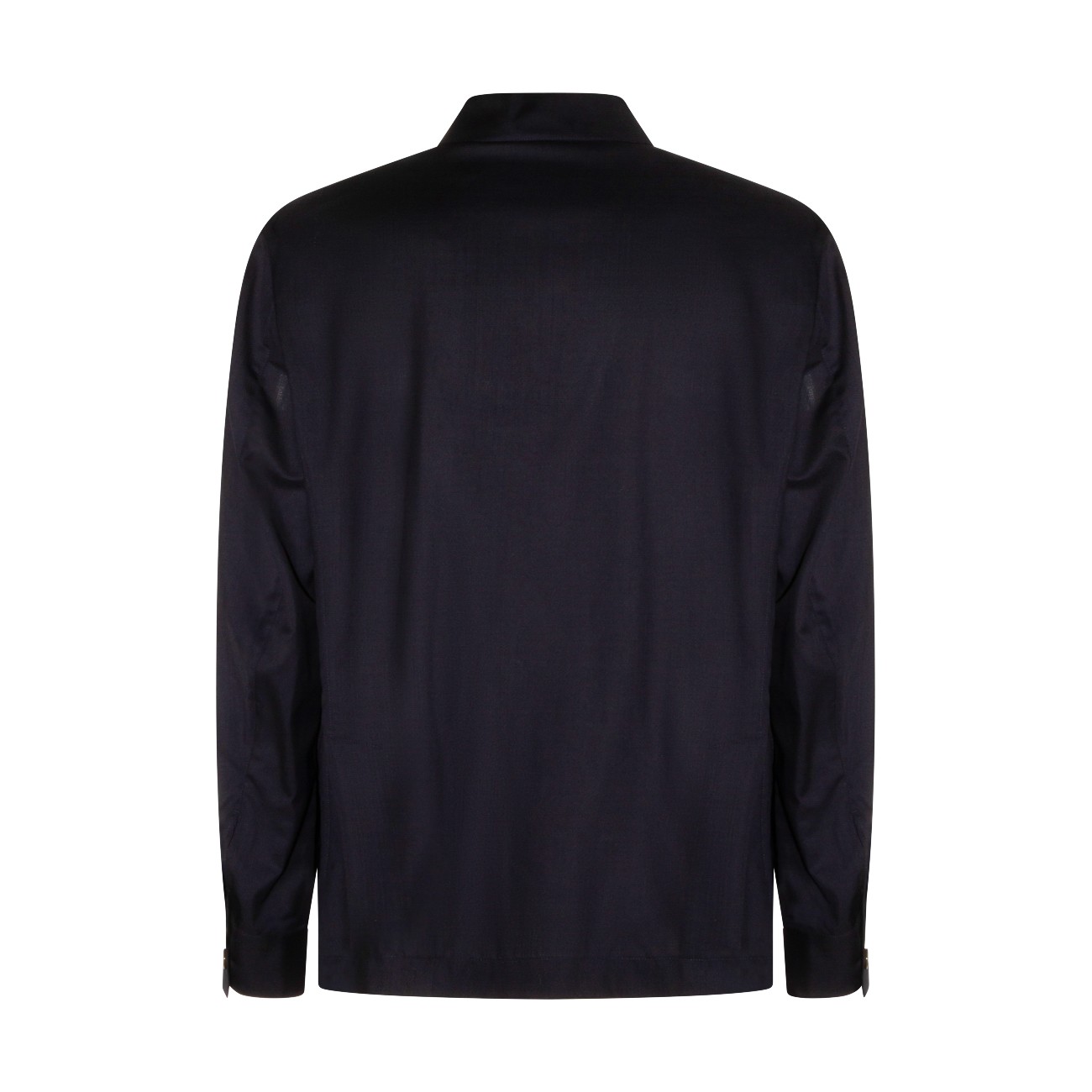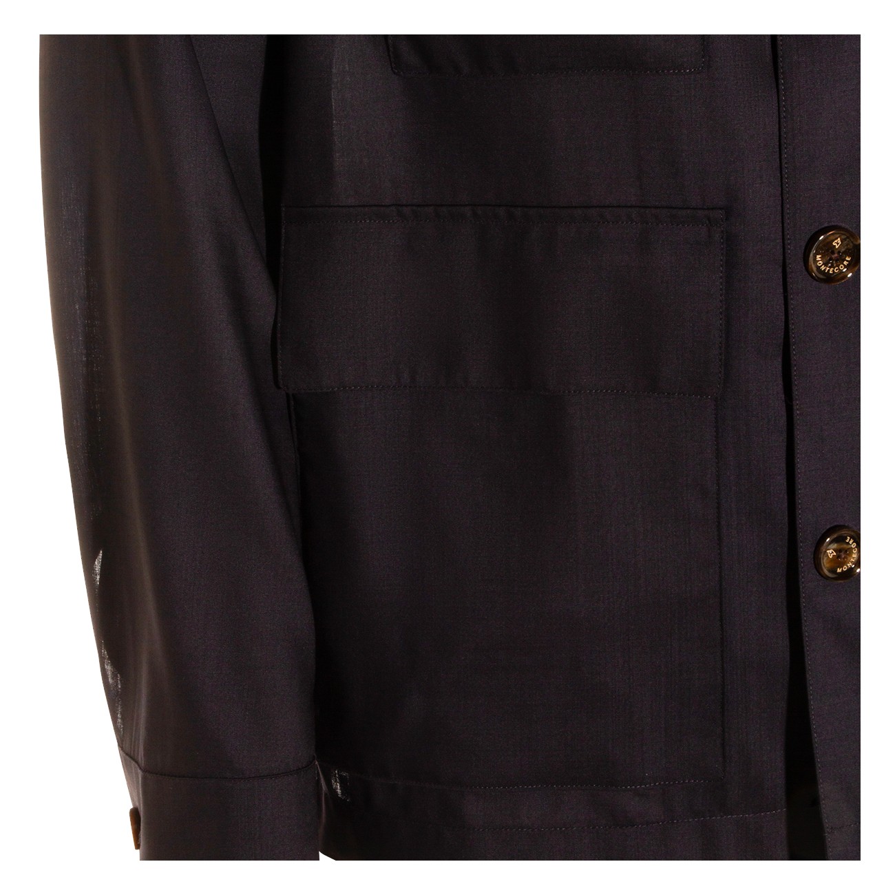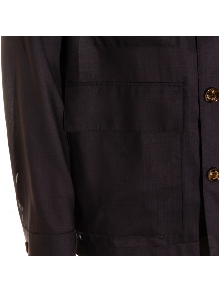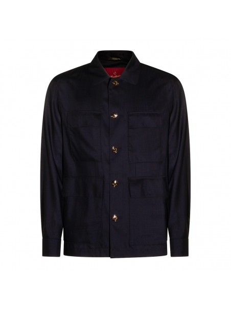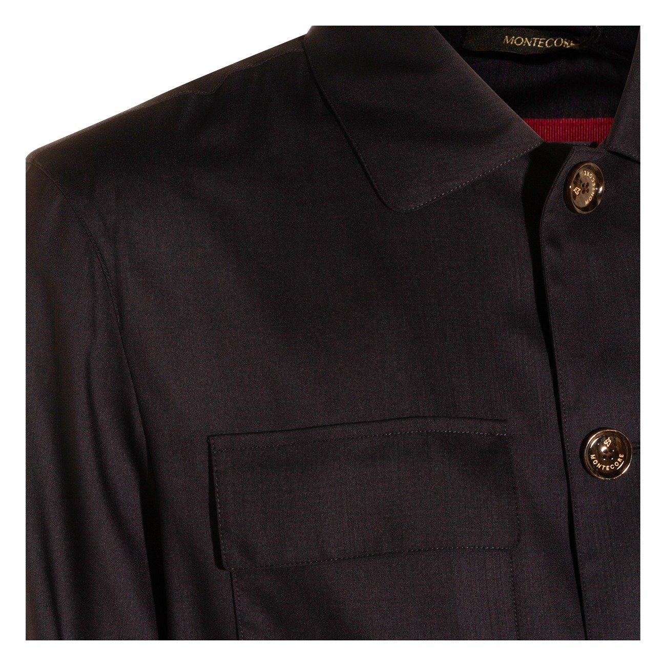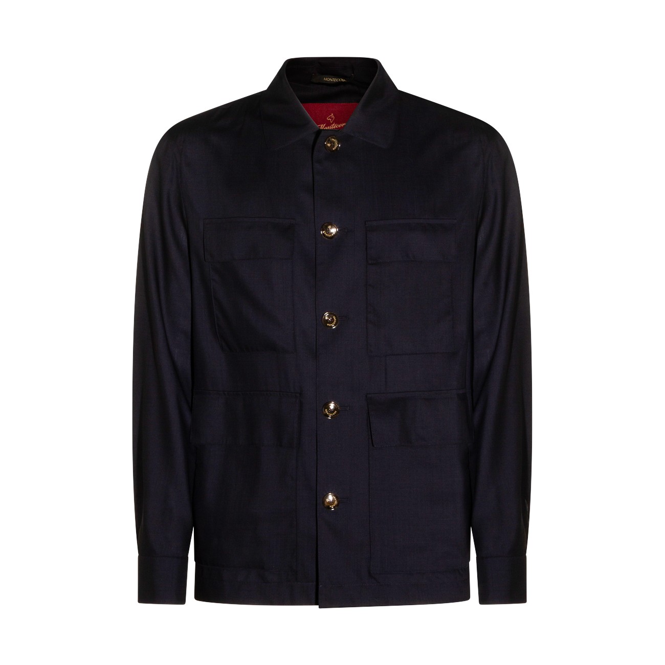 Navy virgin wool casual jacket from Montecore featuring long sleeves, shirt collar, buttons fastening, frontal pockets and regular vestibility.
