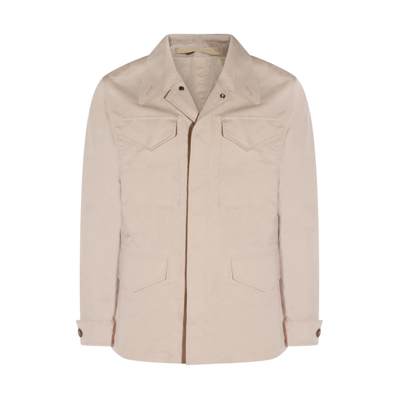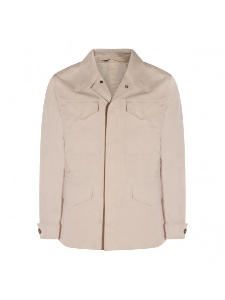 Beige cotton casual jacket from Eleventy featuring long sleeves, multipockets and regular vestibility.