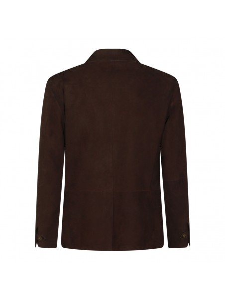 Brown leather jacket from Canali featuring long sleeves, buttons fastening, pockets and regular vestibility.