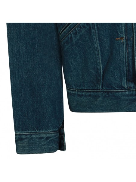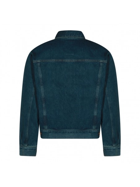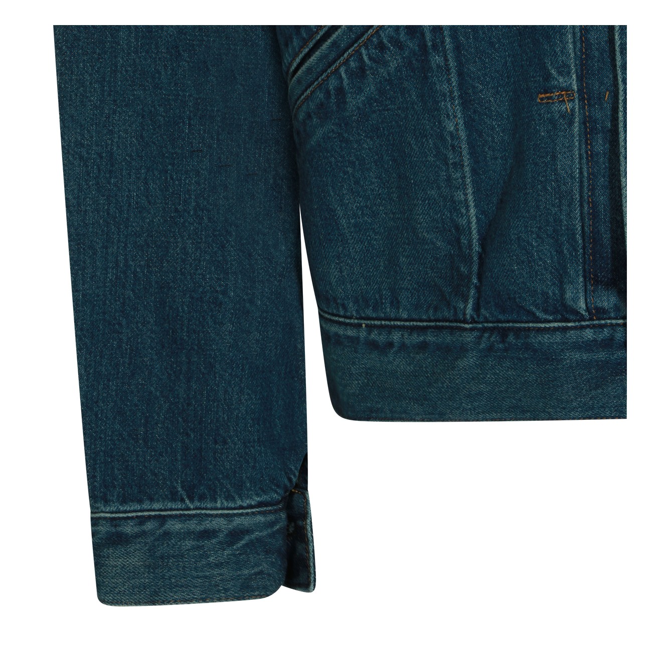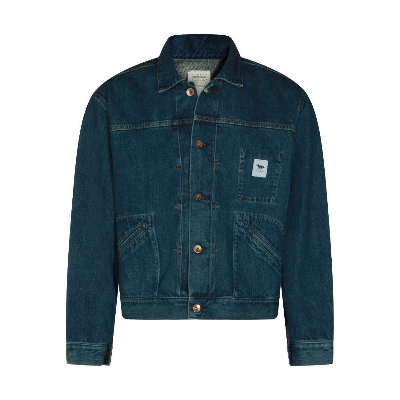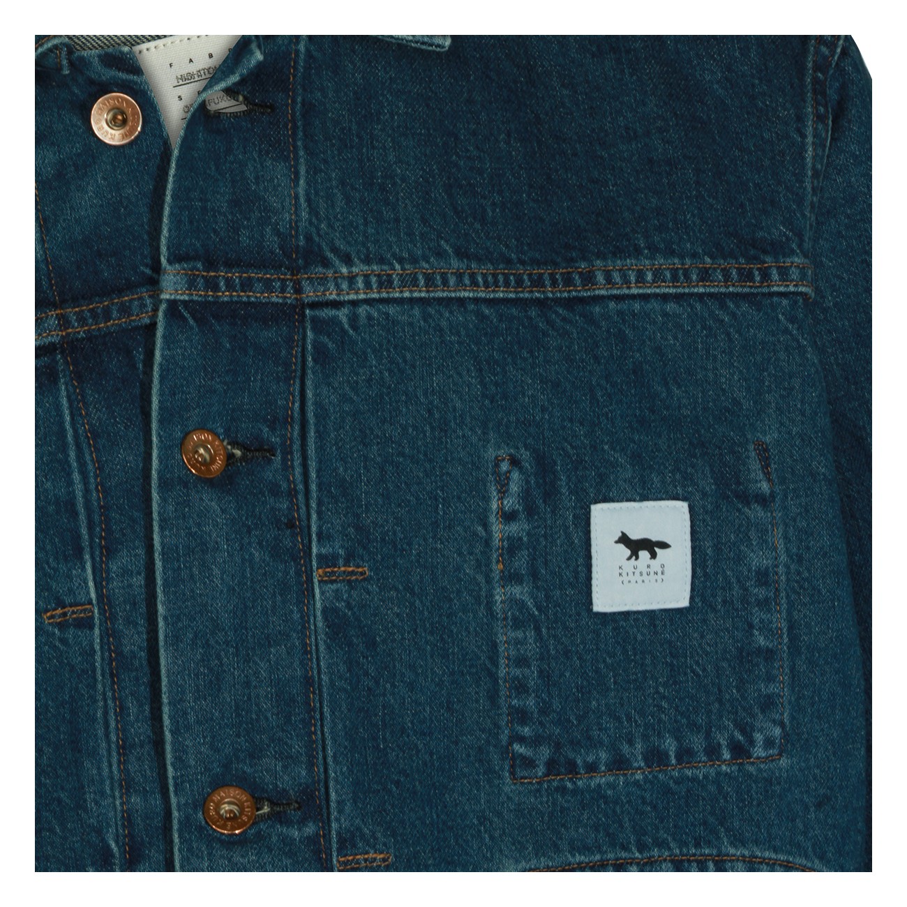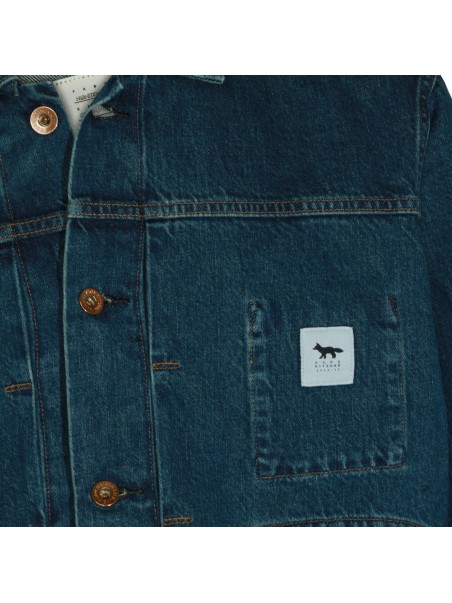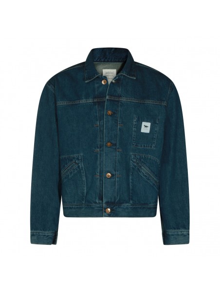 Faded indigo denim jacket from Maison Kitsune featuring long sleeves, magnetic button closure, logo label, front pockets and regular fit.