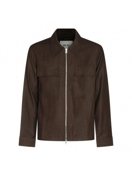 Brown viscose linen blend casual jacket from NN.07 featuring classic collar, long sleeves, zip fastening, chest pockets and regular fit.