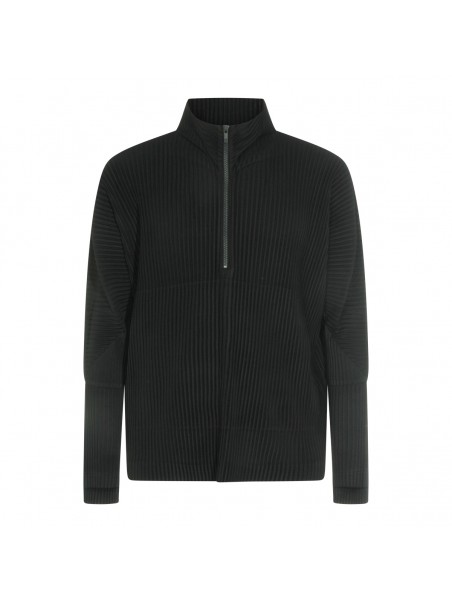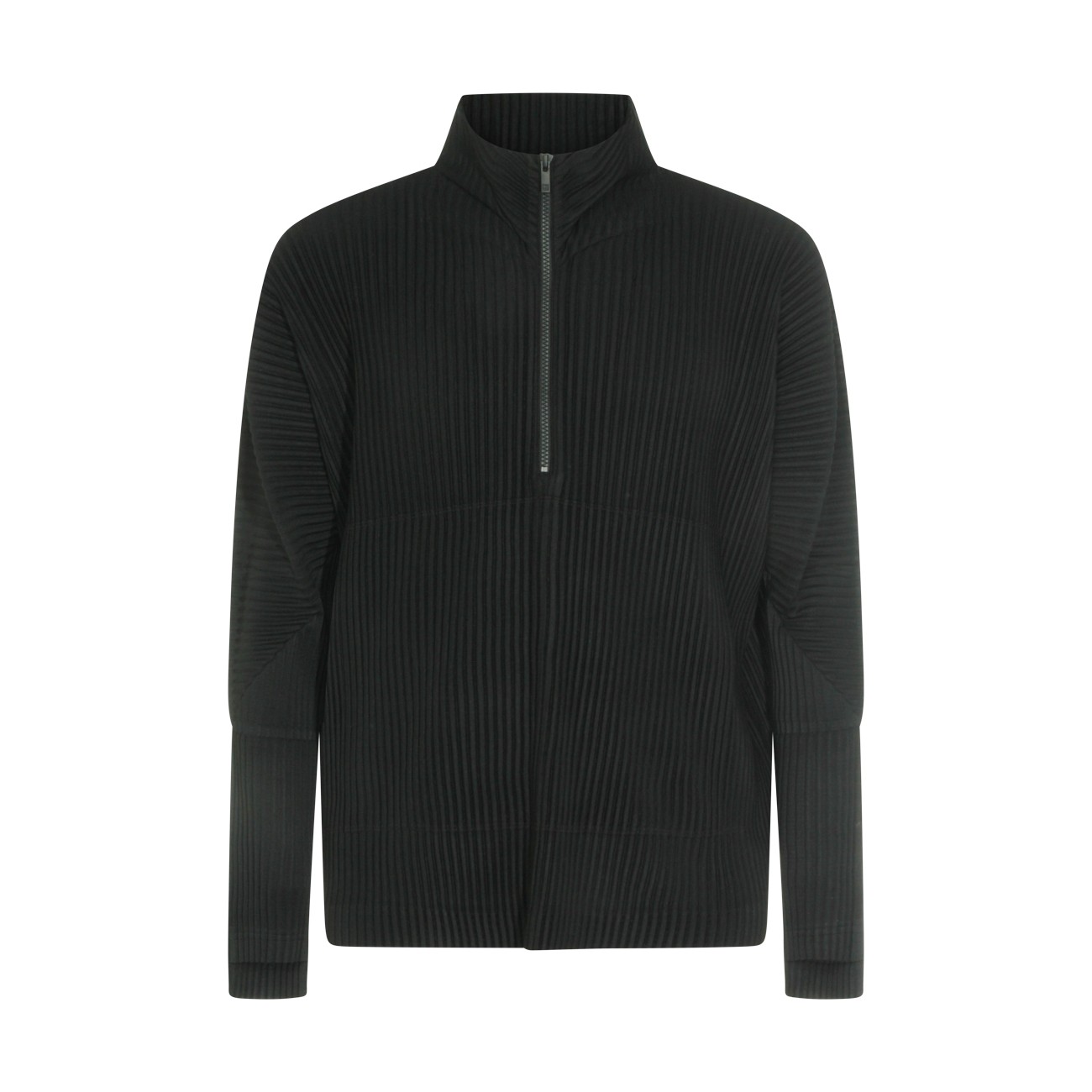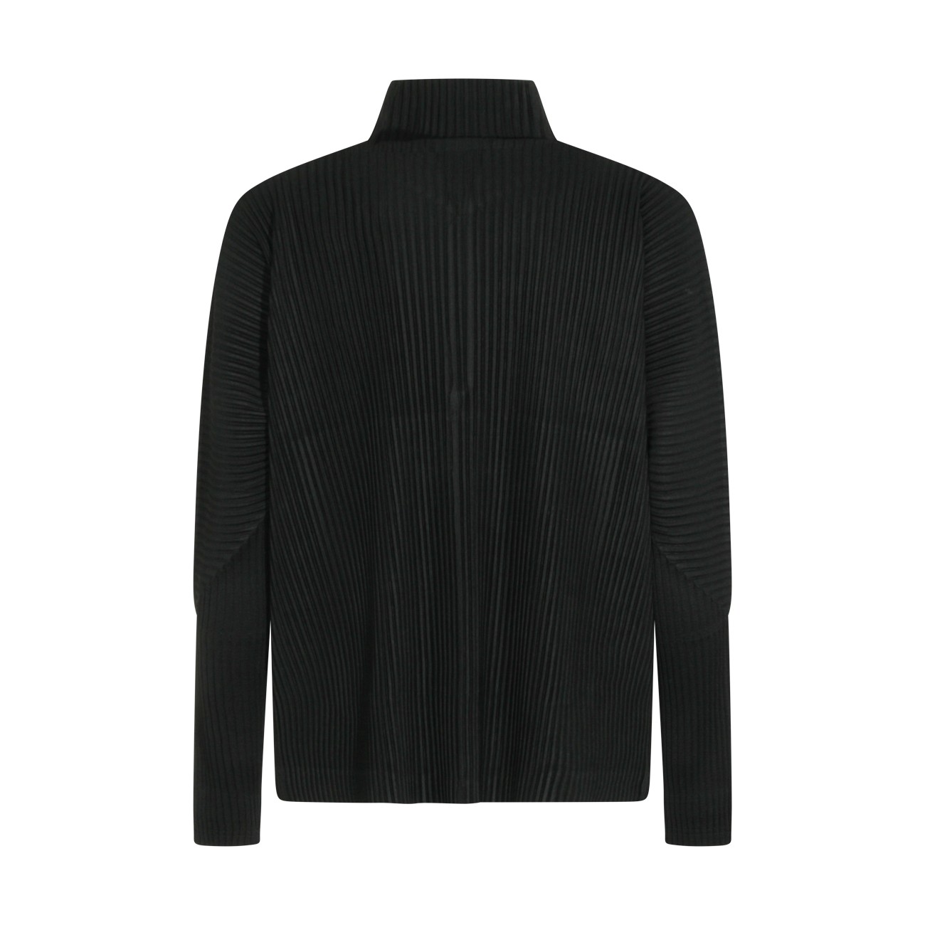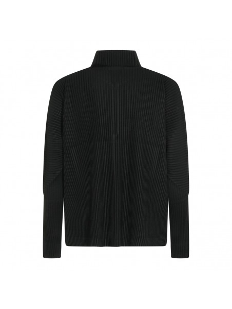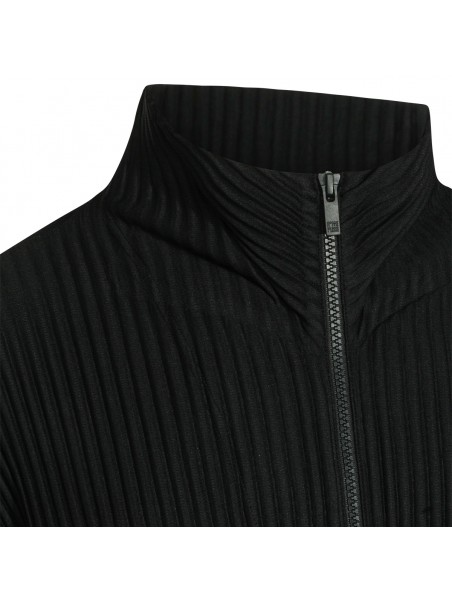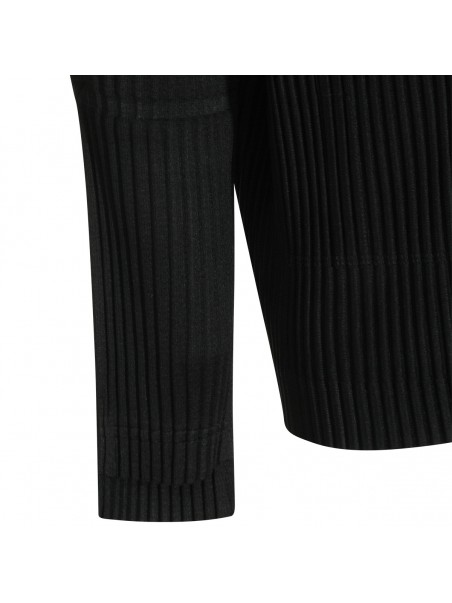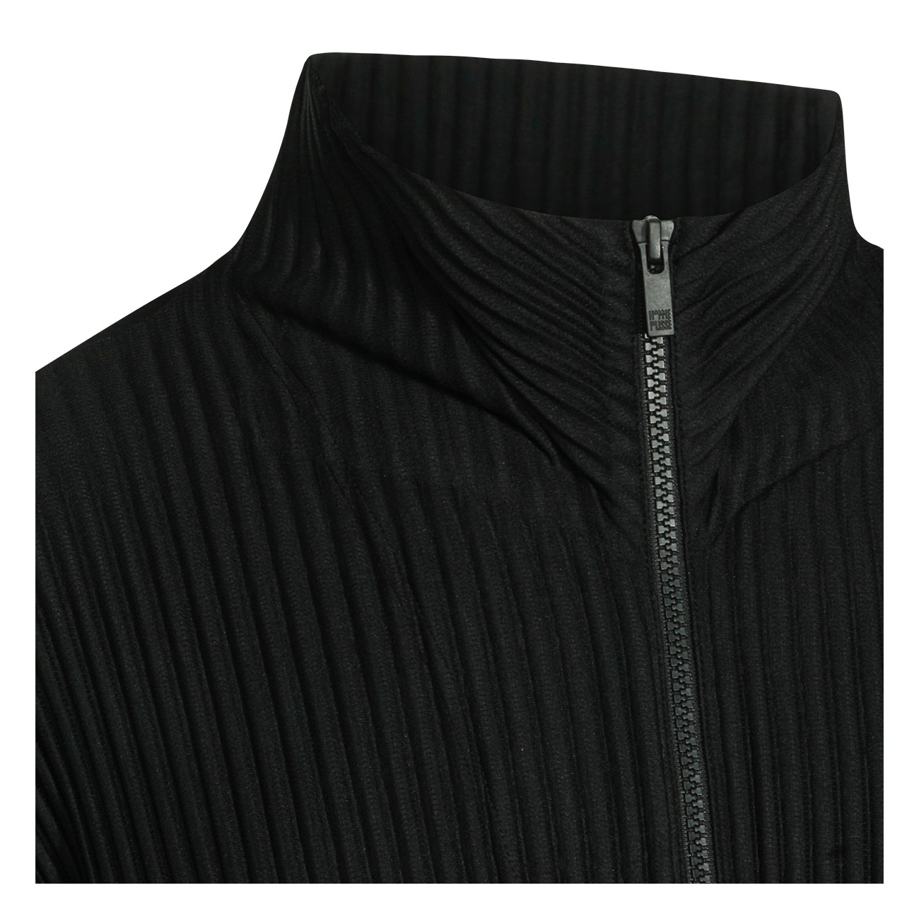 Black casual jacket from Homme Plisse Issey Miyake featuring high collar, long sleeves, pleated and regular fit.
