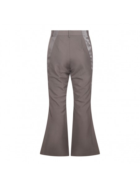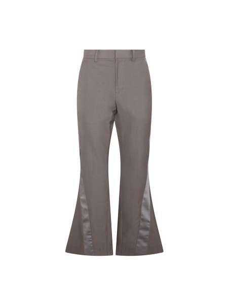 Brown wool blend flared pants from Sacai featuring flared line, high waist, belt loops, concealed zip closure and nylon inserts.