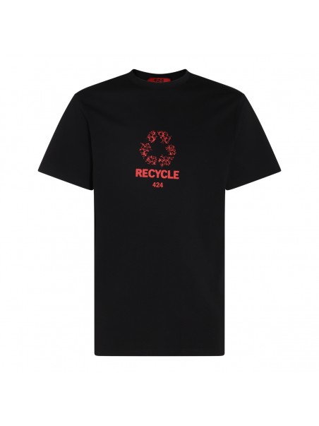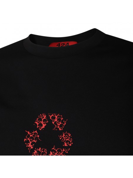 Black and red cotton blennd T-shirt from 424 featuring graphic logo print to the chest, crew neck, short sleeves and straight hem.