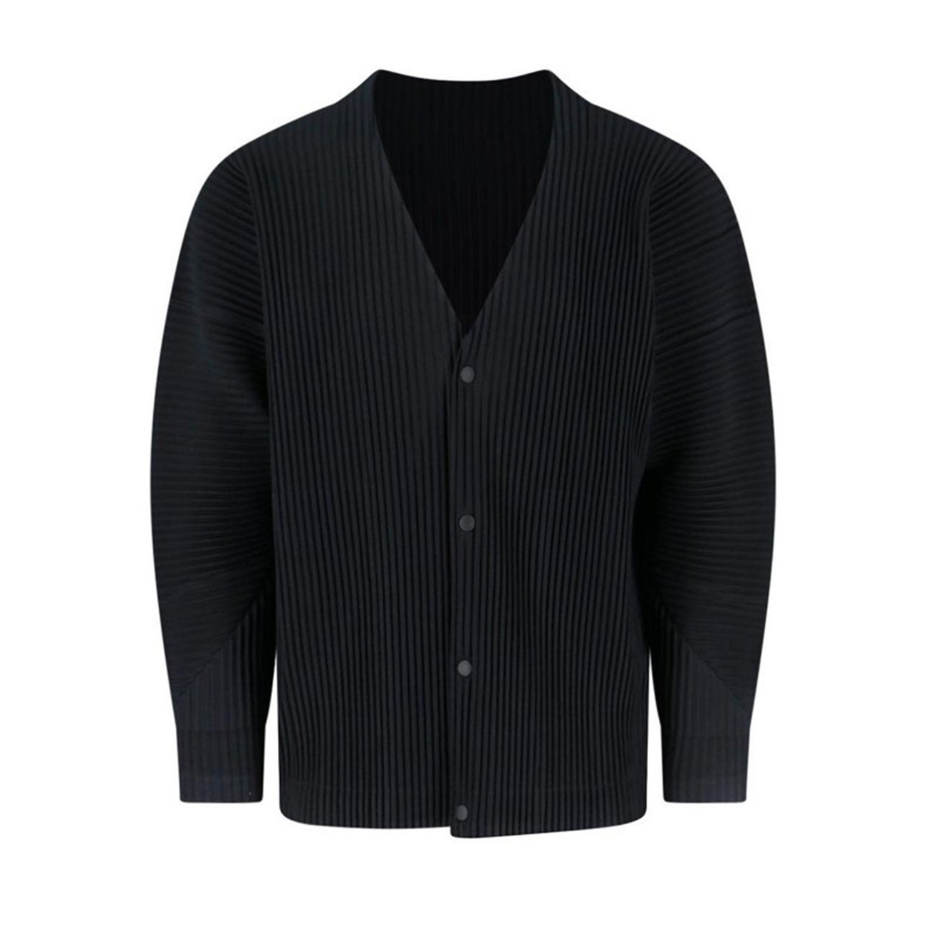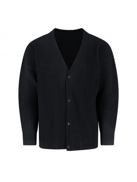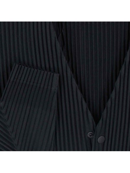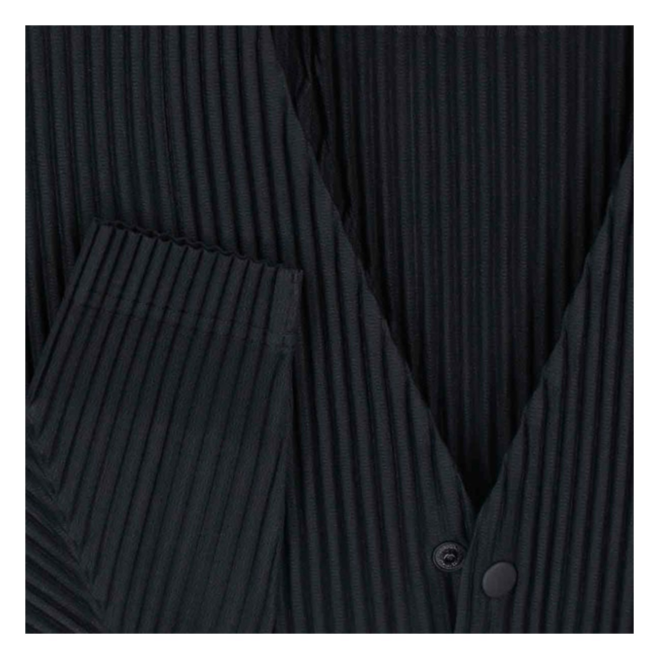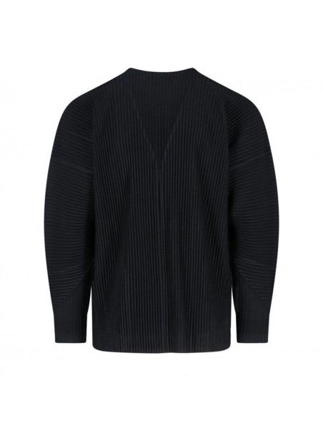 Black top from Homme Plisse Issey Miyake featuring V-neck, buttons fastening, long sleeves and regular vestibility.