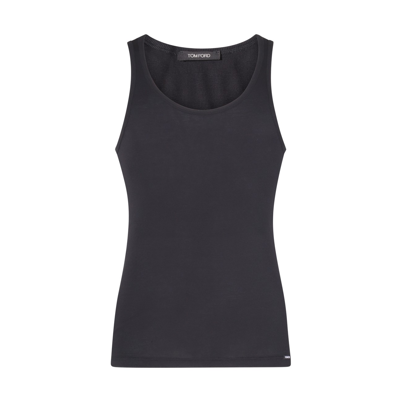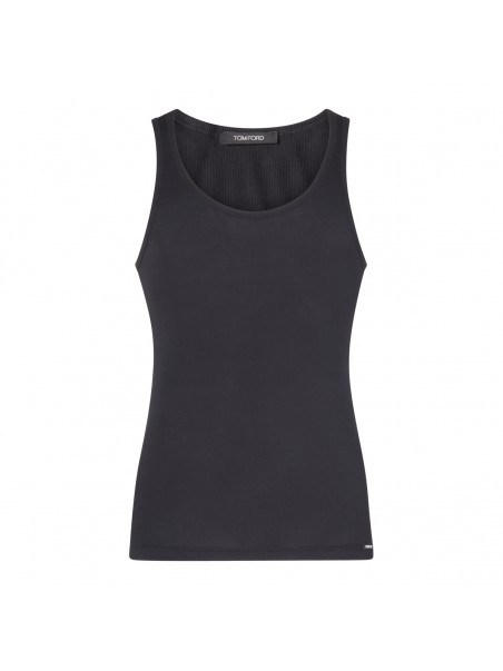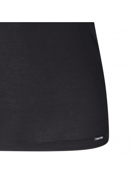 Black cotton blend tank top from Tom Ford featuring stretch-design, sleeveless, scoop neck and straight hem.
