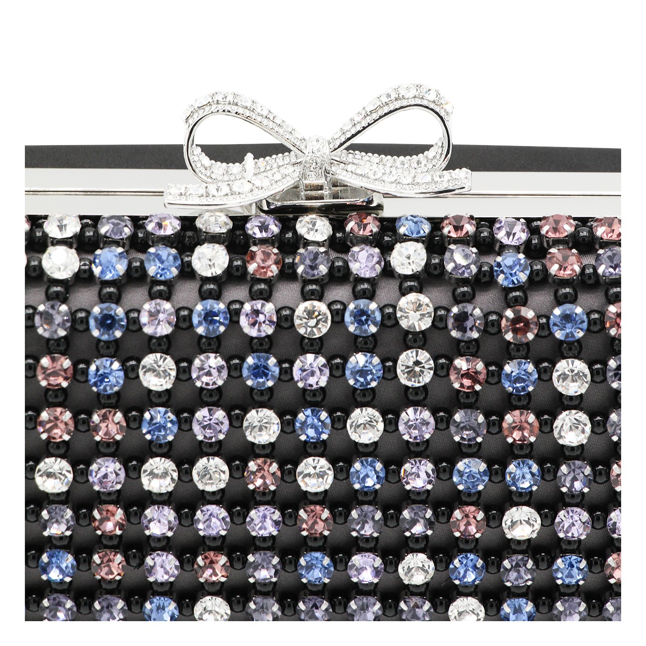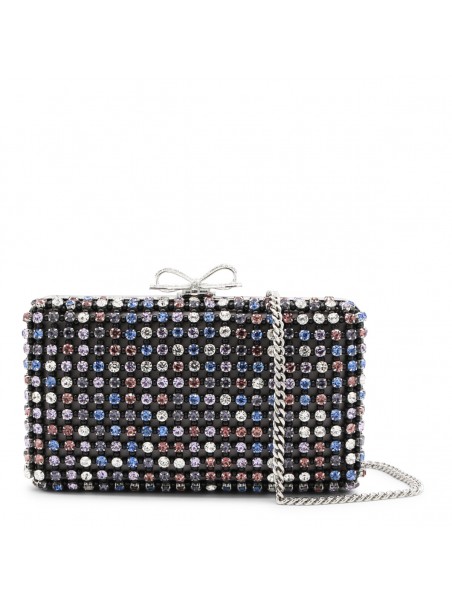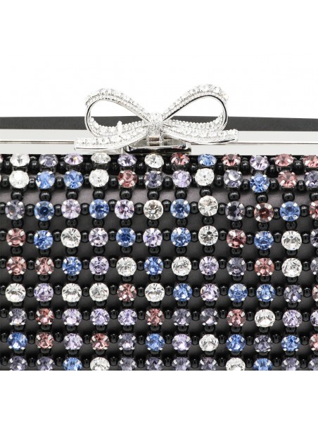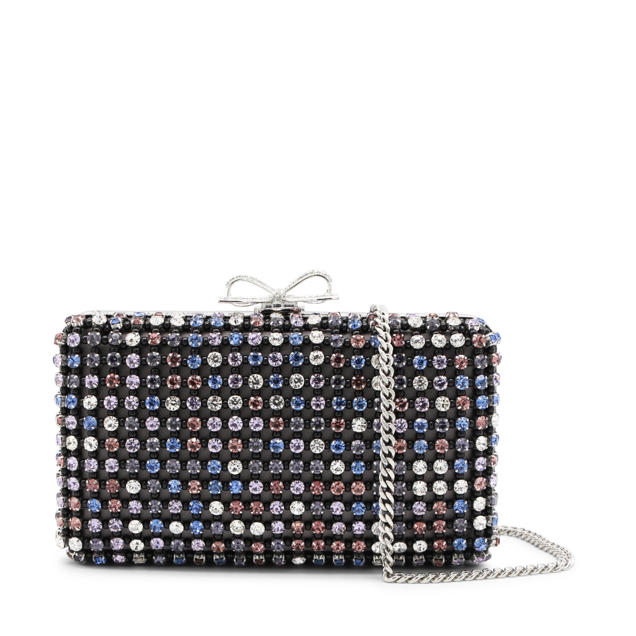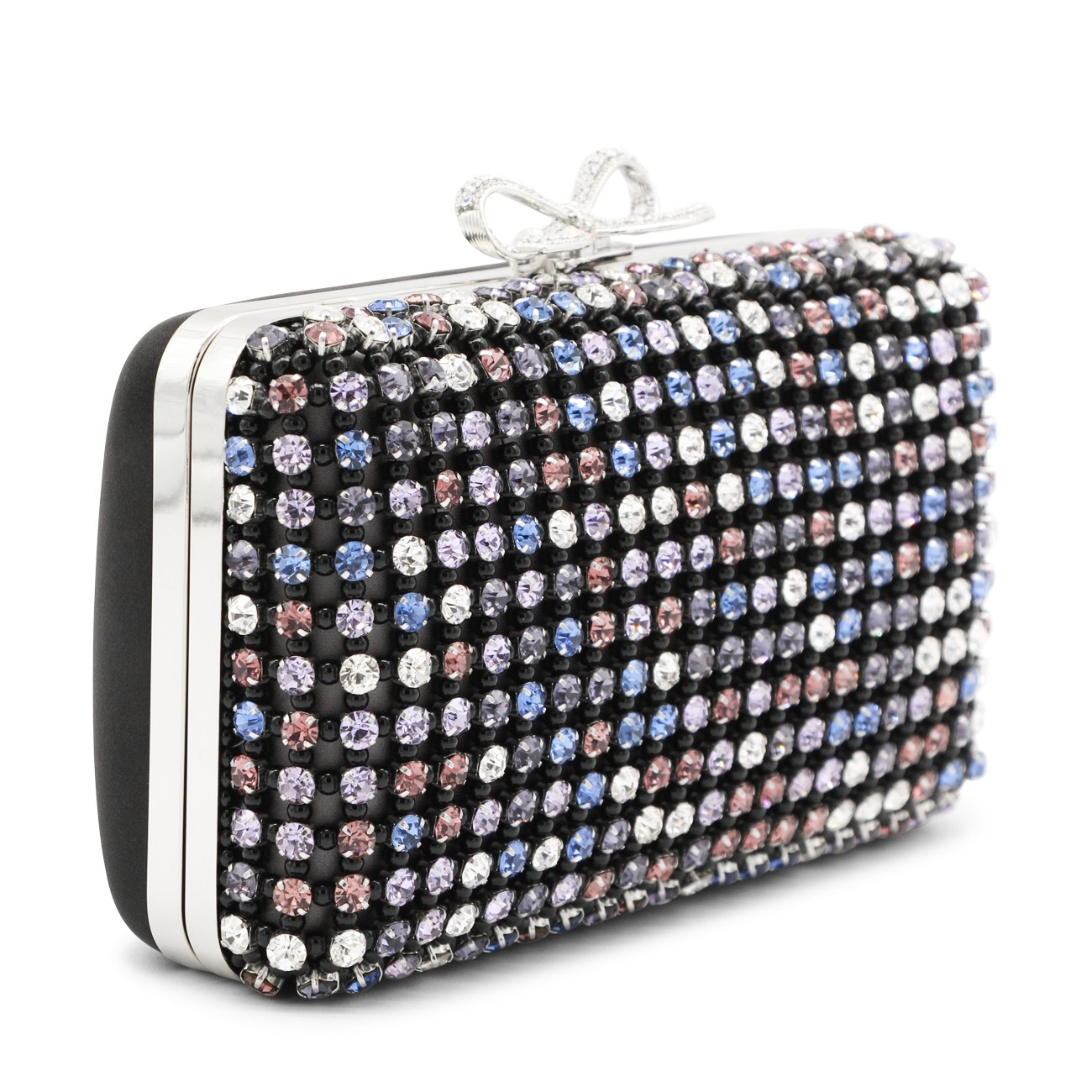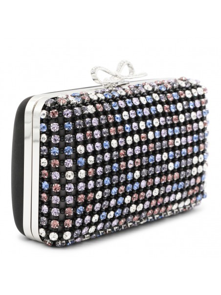 Multicolor clutch from Self-Portrait featuring upper fastening, inside pocket, all over details and removable strap.