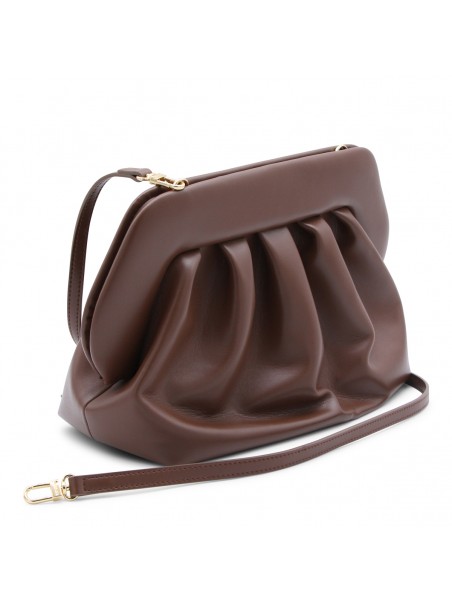 Brown vegan leather Bios clutch from Themoirè featuring removable shoulder strap, top magnetic closure and main compartment.