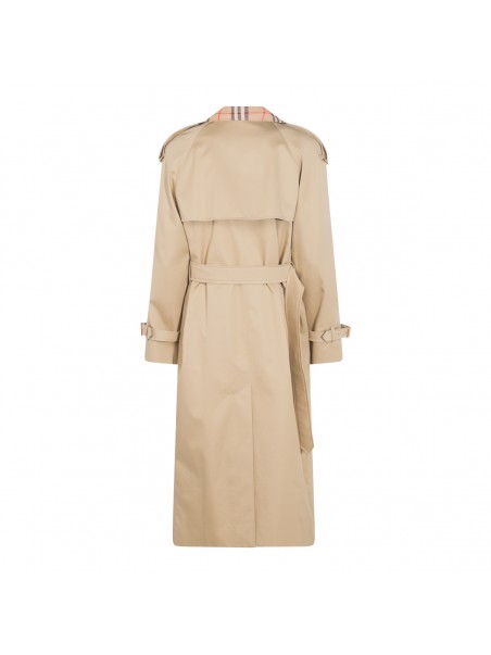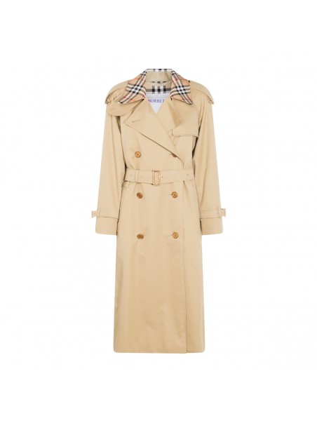 Beige cotton Castleford Trench coat from Burberry featuring long sleeves, branded shirt collar, double breasted, buttons fastening, belt, pockets, cuffs with straps and regular vestibility.
