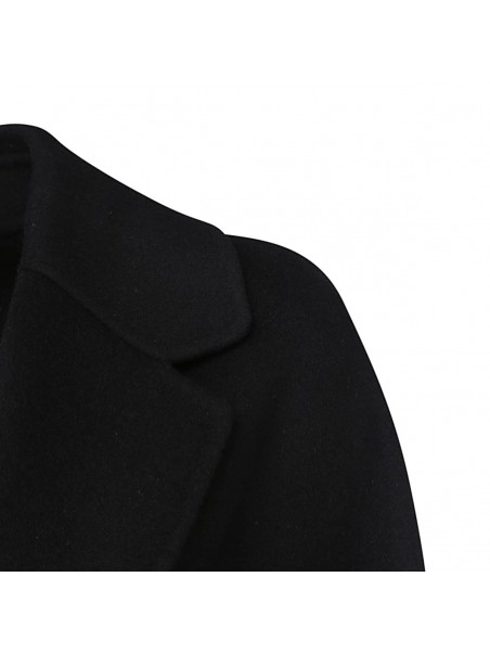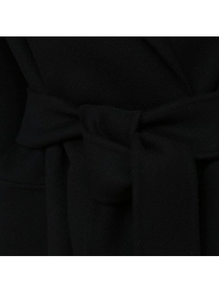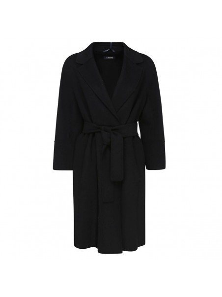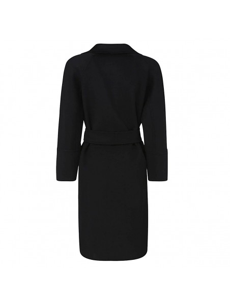 Black wool Arona coat from S Max Mara featuring long sleeves, belt waist, pockets and midi length.